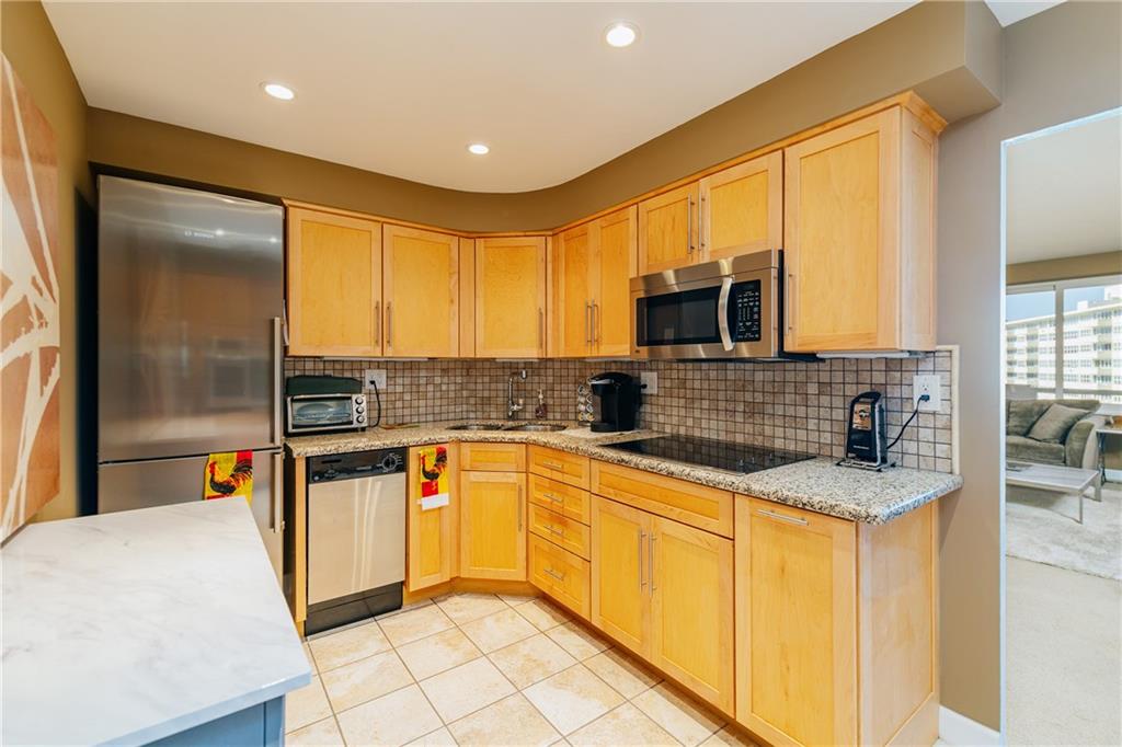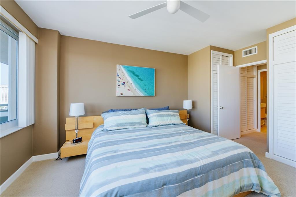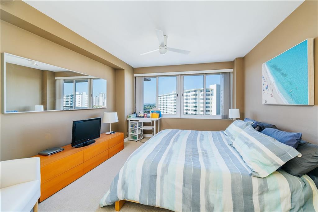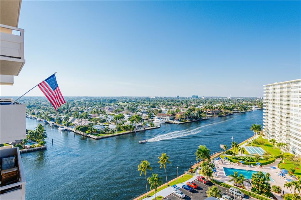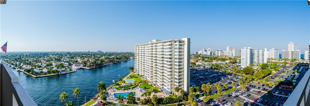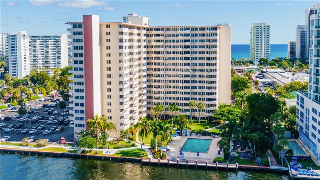 Enjoy sweeping views from the Intracoastal to the ocean with this hidden gem. This move in ready home features an updated kitchen with newer cabinetry and granite counters, and a modernized bathroom with a walk in shower. This home also for hurricane impact windows, and central AC for added peace of mind. Coral Ridge Towers offers all the conveniences of beachside community living, with the peace of mind of 24/7 security and full service professional onsite management. This 55+ Co-Op community is located on the barrier island with the beach, grocery stores and a variety of great restaurants within walking distance. The building offers an array of amenities including a heated pool surrounded by lush tropical landscaping, gym, and more.