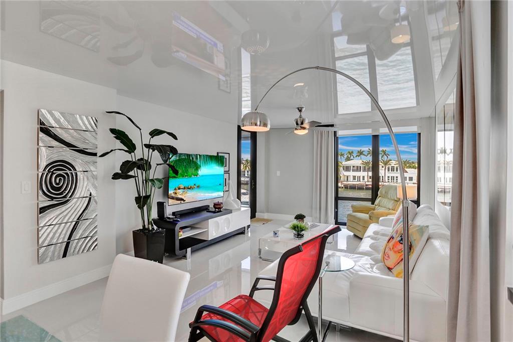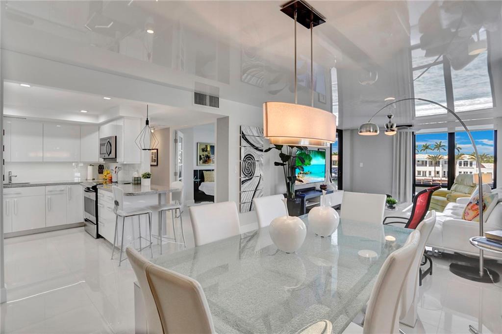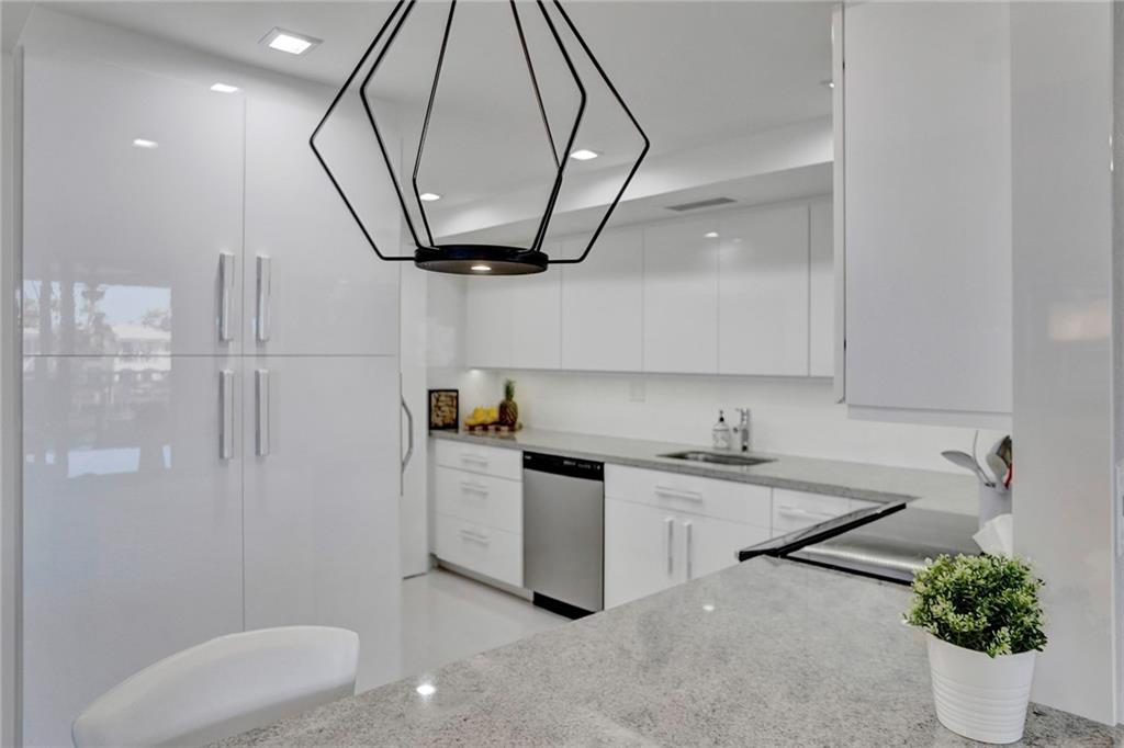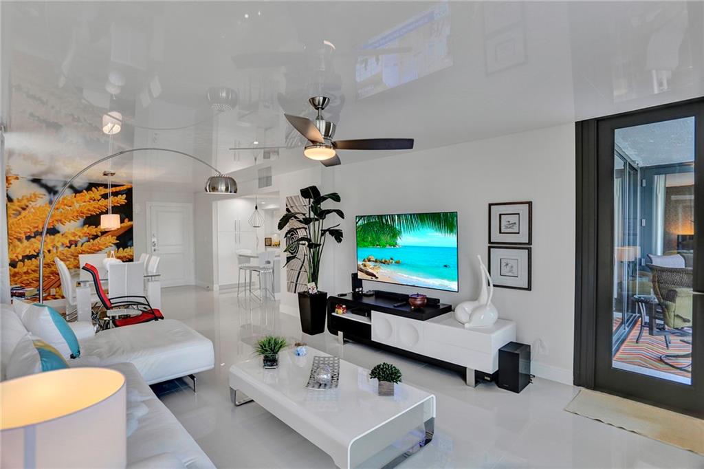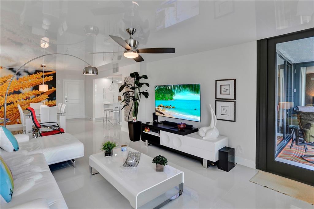 A brightly lit masterpiece of a renovation on this modern design condo....Completely renovated and furnishings included. This is as turn key as it gets. Impact windows throughout, washer dryer in the unit, 24x 24 grout less porcelain tile. Glossy custom ceiling carries light all over the unit, and gives the feeling of grandeur. The photos tell the story and the location which is a short walk to the famous Hollywood beach boardwalk makes this a unique real estate gem. Association has good financials and 50% reserves at this point. 40 year inspection done, and 50 year in the process.