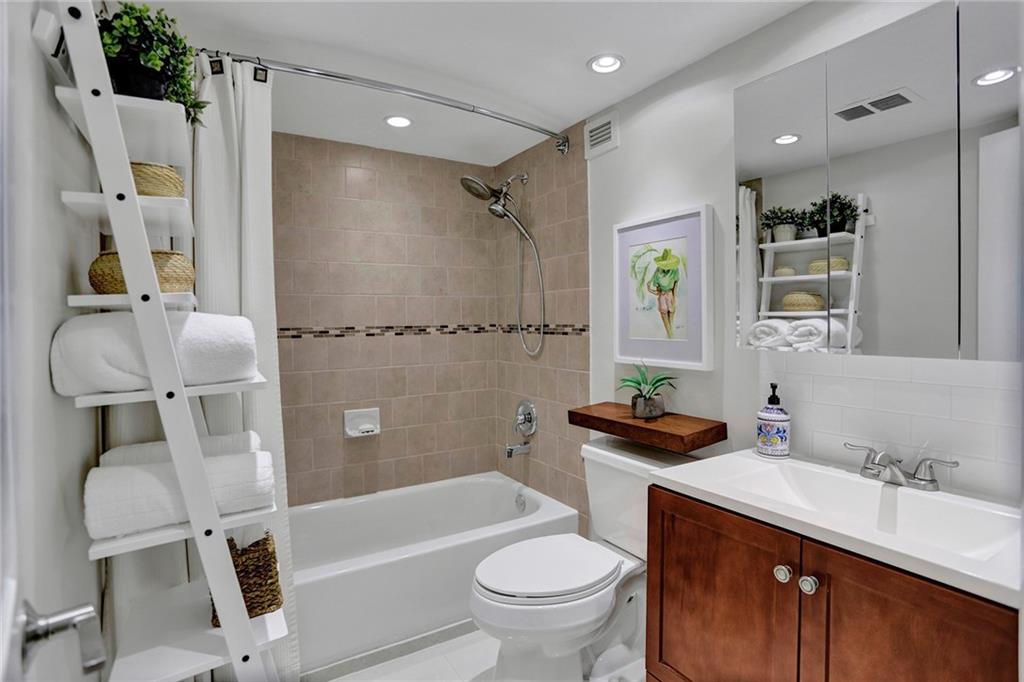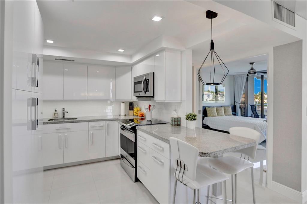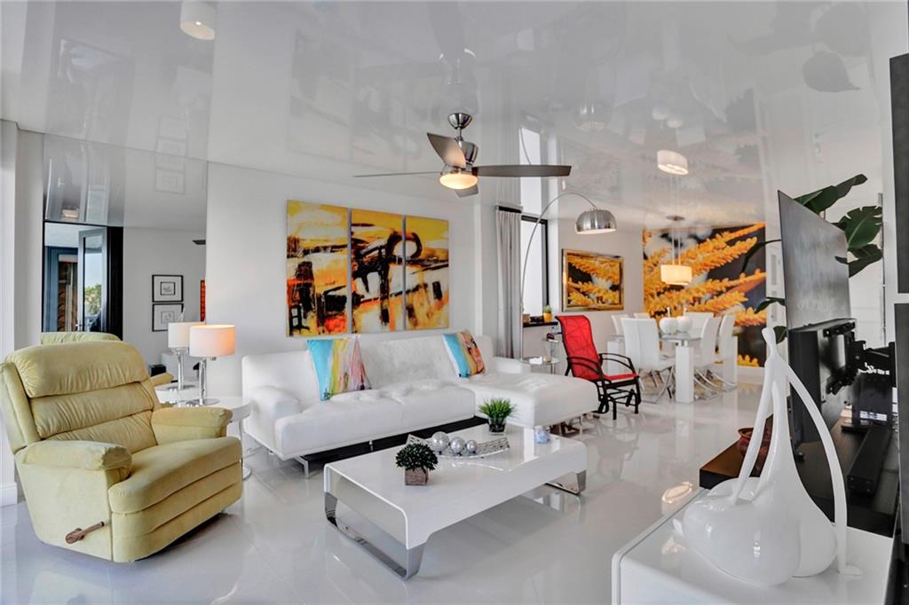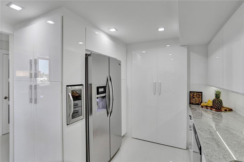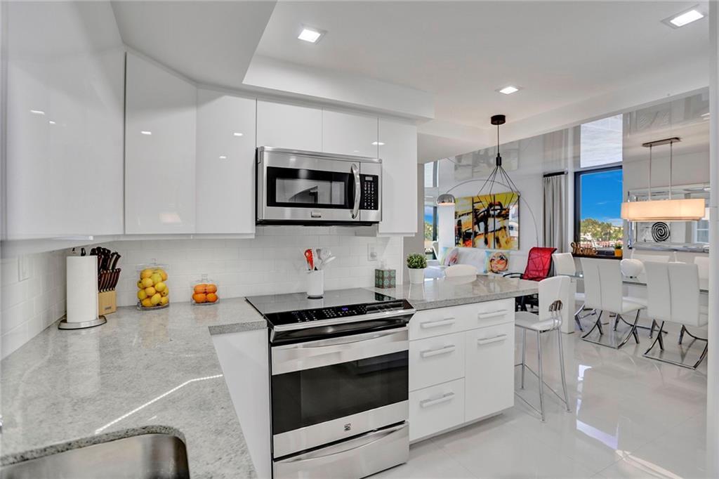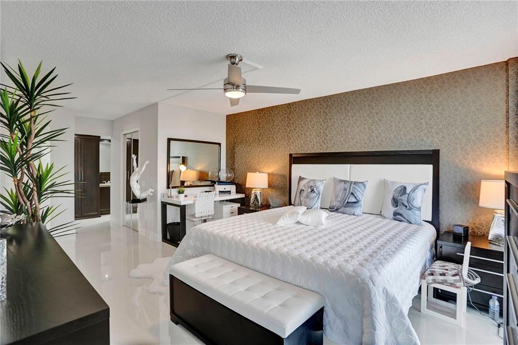 A brightly lit masterpiece of a renovation on this modern design condo....Completely renovated and furnishings included. This is as turn key as it gets. Impact windows throughout, washer dryer in the unit, 24x 24 grout less porcelain tile. Glossy custom ceiling carries light all over the unit, and gives the feeling of grandeur. The photos tell the story and the location which is a short walk to the famous Hollywood beach boardwalk makes this a unique real estate gem. Association has good financials and 50% reserves at this point. 40 year inspection done, and 50 year in the process.