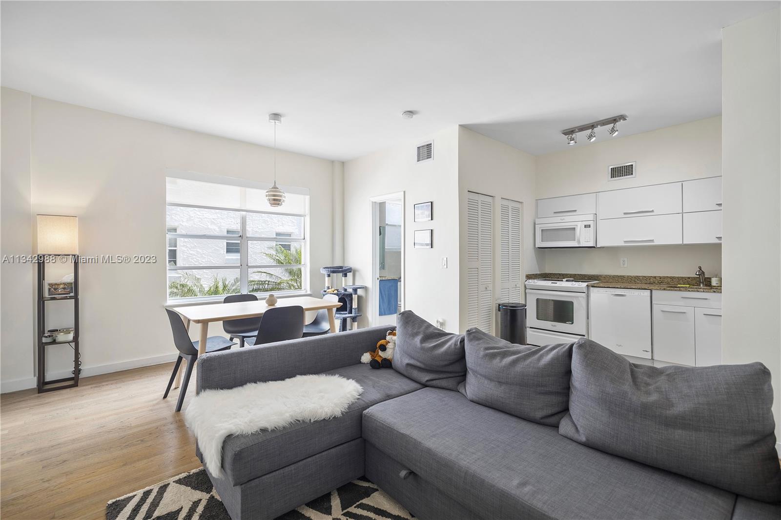 Contemporary style, Renovated apartment in the charming The Fenimore building. One Bedroom/one bathroom with kitchen, new bathroom, wood floor, central A/C. Near Flamingo Park w/20 New tennis courts, swimming pool. The property is unique, spacious, very bright, and very quiet. Washer and Dryer inside the property. The building has laundry facilities and a locked bike storage room. Small pets are OK.