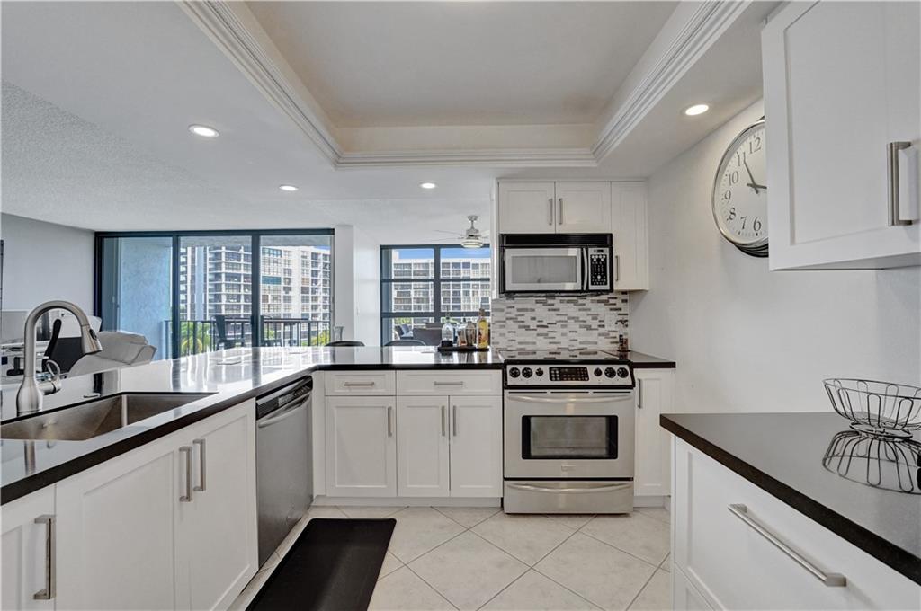Absolutely one of the best units in the building or the Three Islands neighborhood! Gorgeous remodeling and a very smart setup topped with wide Intracoastal views from every room and from the balcony! Newer kitchen, Newer washer & Dryer in unit, newer baths, newer A/C, and everything done with top-of-the-line finishings and taste! This unit also features a rarely available completely covered wide parking space and a really massive walk-in closet! The complex is like a 5-star resort on a gated island with guards, Tennis, Heated Pool, Gym, a Huge playroom, etc...TOP LOCATION, JUST ACROSS THE BRIDGE TO MAGNIFICENT SAND BEACHES, NEAR STORES, RESTAURANTS, GROCERIES, GOLFSTREAM SHOPS & DINING... MUST SEE! Private storage in the building! Professional photos coming soon.