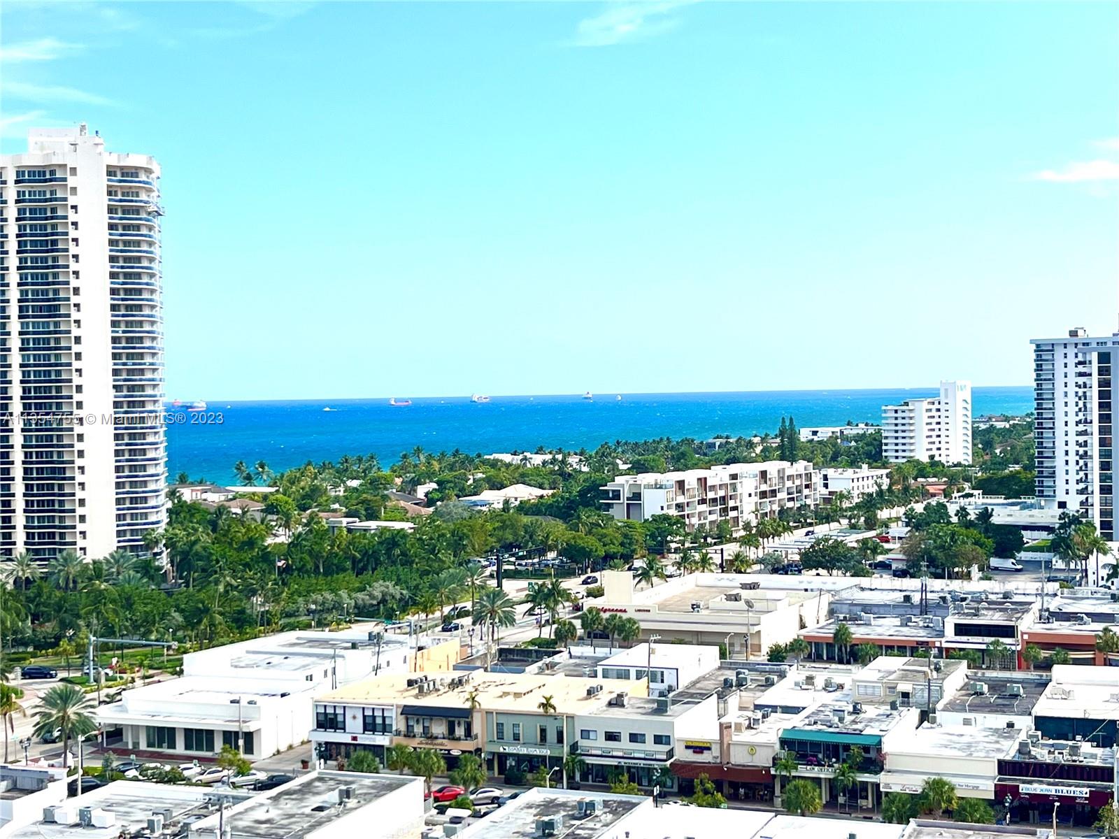 Stunning views from this 2 Bedroom 2 Bathroom Condo. Enjoy Ocean views, Intracoastal Views, Downtown Fort Lauderdale City Skyline, and pool views from your large balcony! This is a nice corner unit that allows for a nice calm breeze! Tile flooring though out and lots of storage space. Large Primary Bedroom with En Suite and large walk-in closet. Ocean views from all rooms! Amenities include a heated pool, gym, community lounge, library, updated lobby with waiting area, community shuttle rides from this complex, 24-hour security, a car wash area, and high speed elevators. Walk to the beach and many restaurants and shops. Very convenient location! This is a must see. Minutes to downtown Fort Lauderdale, Las Olas, the airport, Wilton Manors, and much more!