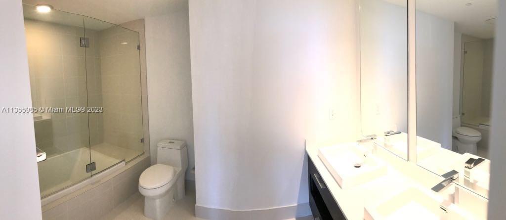 This luxurious 1-bed,1.5-bath condo in Brickell is your dream home. With an open floor plan, natural light fills the living, dining, and kitchen areas. The kitchen features quartz countertops, top-of-the-line appliances, and ample cabinet space. Enjoy city views while relaxing in your private balcony. The primary bedroom includes a spacious built-in walk-in closet and a lavish en-suite bathroom with a large soaking tub and glass-enclosed shower. You'll have in-unit laundry and central air conditioning. Amenities include Eqnox gym, fitness center, 2 pools incl a rooftop, spa, massage rooms, playroom, theater, 24-hour security. You'll be steps from Brickell City Center and the city's best restaurants, shops, and entertainment. This is your chance to make this stunning condo your new home