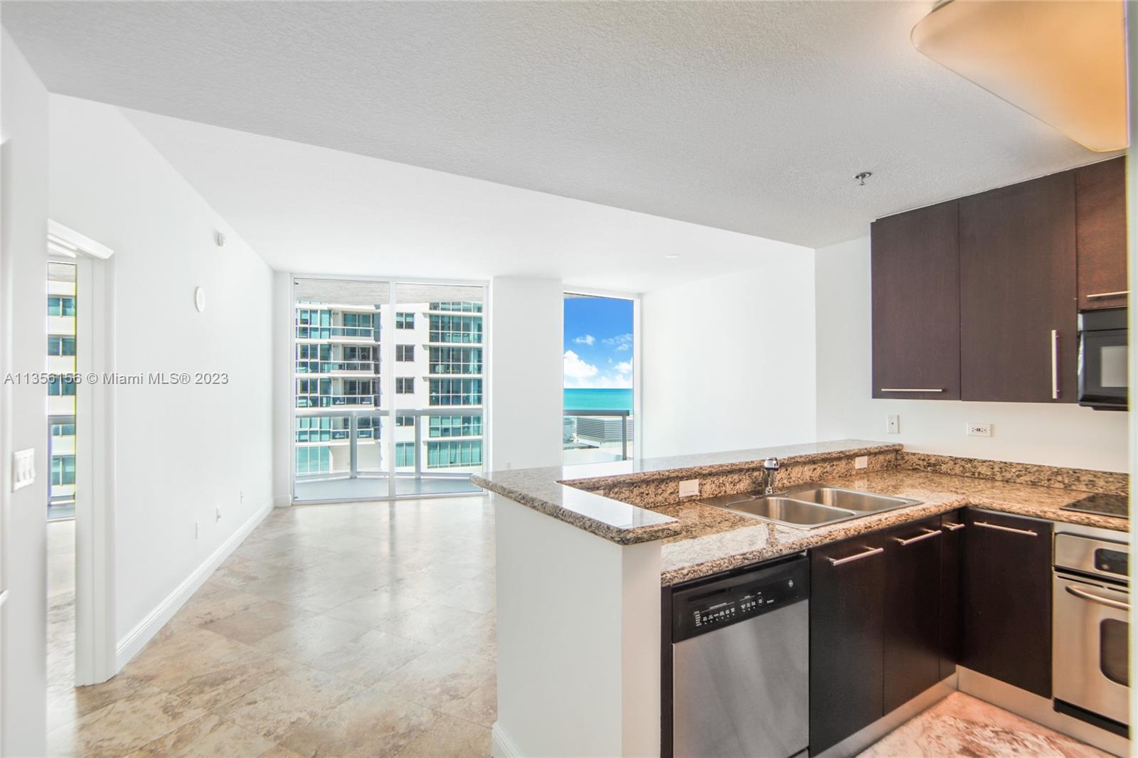 Bel Aire On the Ocean - luxury oceanfront condo unit with views of the ocean through its floor-to-ceiling impact windows and sliders leading to a large balcony. This mint condition unit has marble flooring throughout. Kitchen has stainless steel appliances, a brand-new refrigerator, and granite counter tops. Washer and dryer in unit. Pet friendly building with amenities that include large pool, Jacuzzi, built-in BBQ, fitness center, 24-hour concierge and valet service, bike/paddleboard storage. Access to the beach and boardwalk. Park next door for kids and conveniently located to shops and restaurants nearby. Flexible 12 times a year, 30-day min. rental policy. Great place to enjoy the Miami Beach lifestyle or as an investment property!