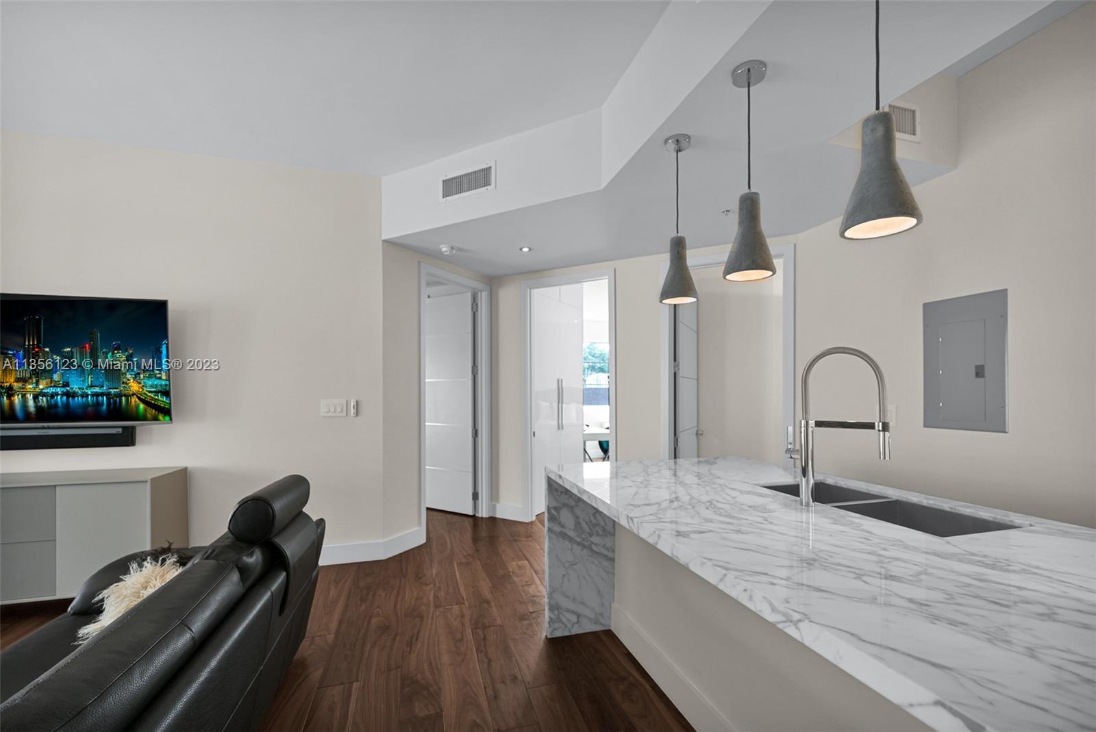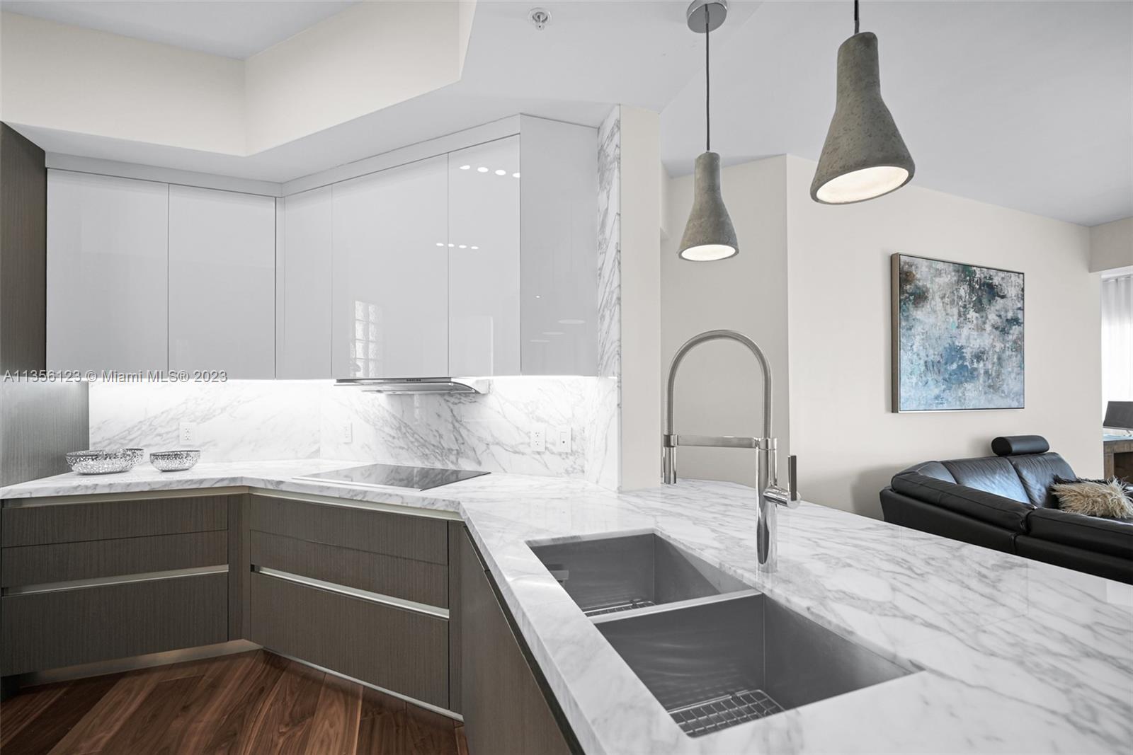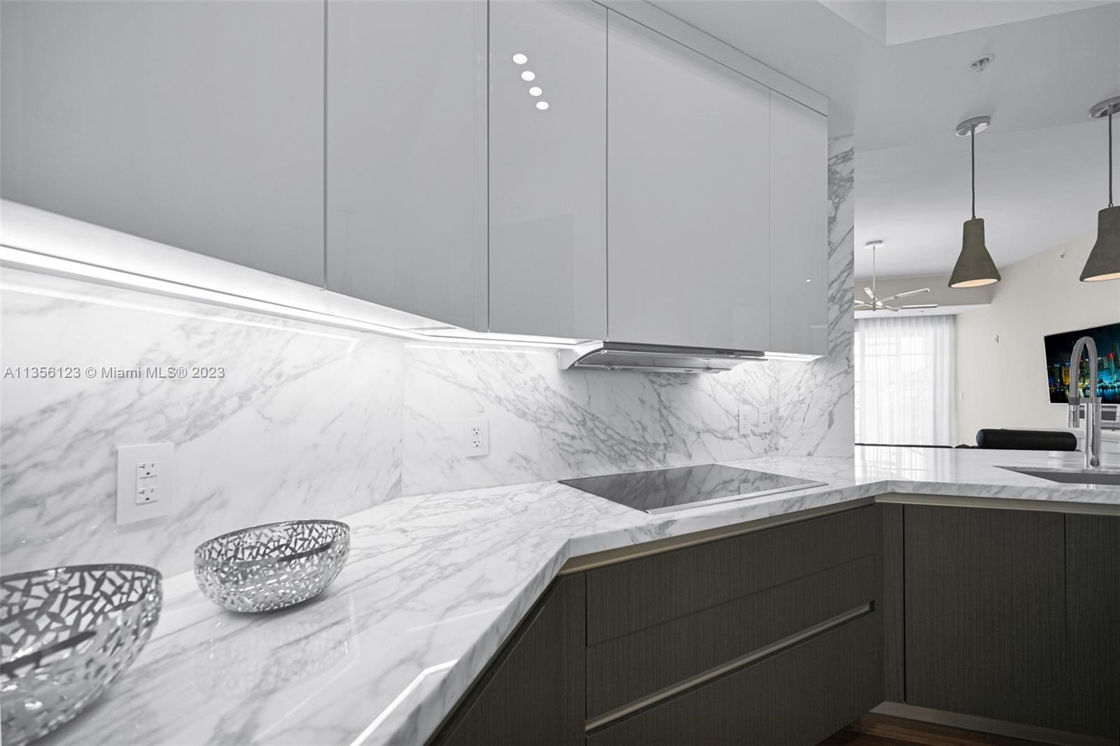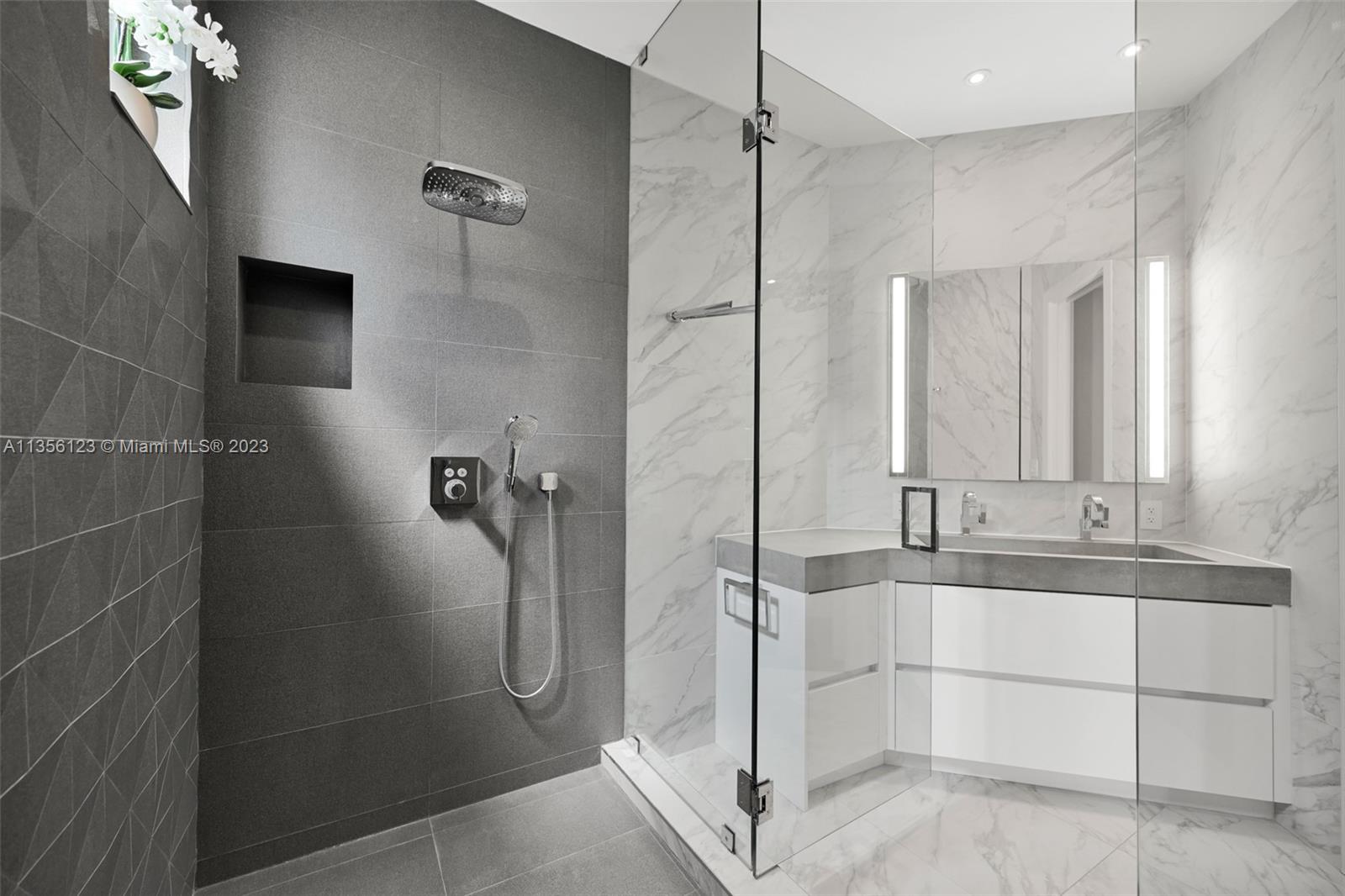 Welcome to The Courts! South of Fifth ( SOFI) South Beach. Penthouse Renovated to high specifications. 2 plus den with amazing rooftop terrace living. Stunning views of sunrise, sunset, & cruise ships going by. Kitchen boasts Italian Marble Staturio countertops, Custom cabinetry. Every detail meticulously planned by owner. Custom doors, walk in closets. Ask to see custom list. This beautiful gated community offers the perfect combination of convenience, safety, & luxury. RARE wide 2 tandom parking . Additional storage. Enjoy the tranquil atmosphere, complete with 2 sparkling pools, acres of recreation & fitness, & lush landscaping. Easy access to The Beach, cafes, dining, & entertainment. Life at The Courts is sure to be one of comfort & ease. Come experience the lifestyle you deserve.