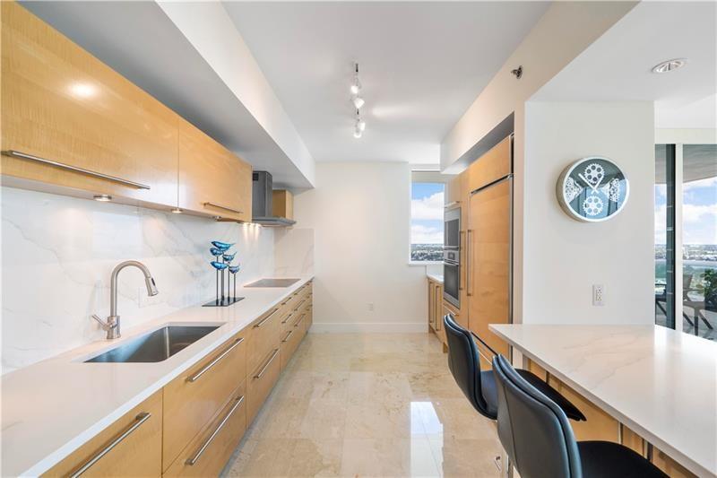 FULLY REMODELED open-concept 2/2 with CUSTOM designed kitchen, marble flooring, fixtures & more! Highly desirable NW corner residence offers dramatic views of the Ocean, Intracoastal Waterways, & Downtown Skyline! Designer recessed lighting in new reflective ceiling showcasing ocean, intracoastal & city skyline. The chef's kitchen is equipped with stunning quartzite countertops & custom appliances incl. Sub-Zero & Miele. This exclusive residence includes a private elevator foyer entrance & floor-to-ceiling high impact glass providing views from every room! Las Olas Beach Club is steps away from the beach, dining, entertainment, & includes All Resort-Like 5 Star Amenities such as OceanFront Infinity-Edge Pool (service included),fitness center, Dedicated Concierge, & more!