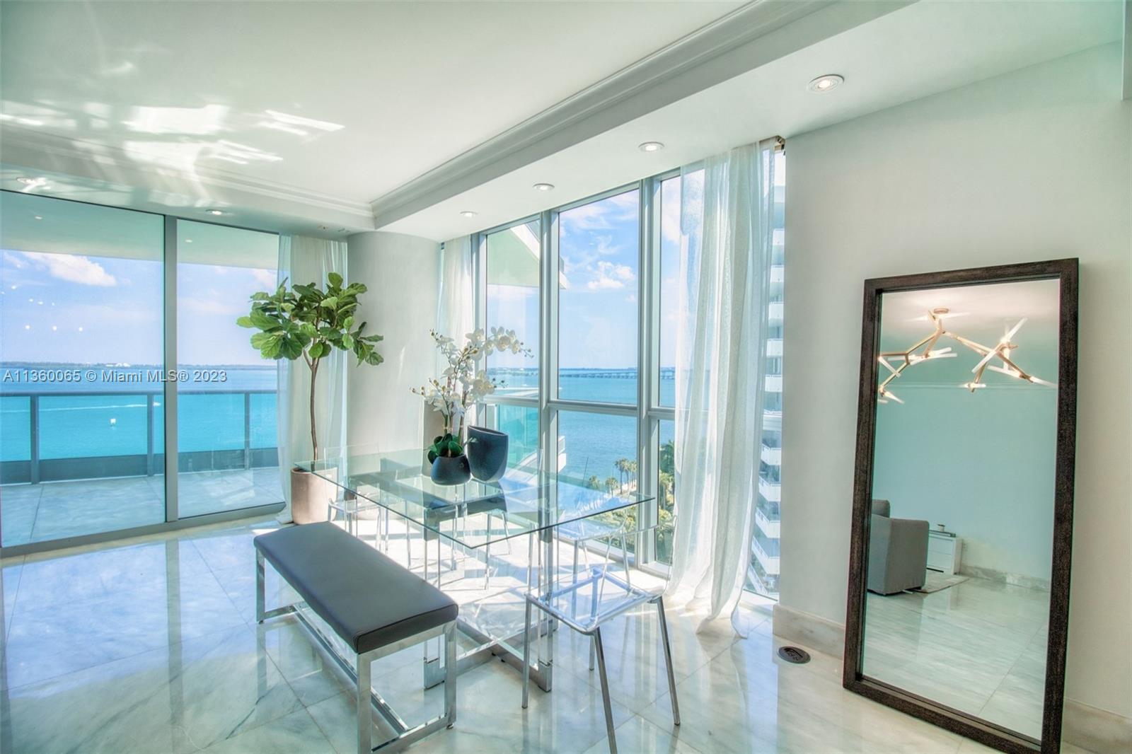Live limitlessly in the premier South, South East corner 2 bed/ 2.5 bath at Jade Brickell with 3 parking spaces! Once you enter this property through your semi-private elevator, the corner-glass windows bring in beautiful natural light and offers dramatic views of Biscayne Bay! 1,878SF of desired open-concept living offers plenty of flexibility to wine-and-dine or simply watch the sunset fade from every room. Each spacious bedroom features a relaxing en-suite bathroom and offers plenty of closet and storage space. This sophisticated, stylish condo features 36' Calcutta Marble flooring throughout, Subzero and Miele appliances, white Italian cabinets, rain shower and jacuzzi tub. Located in Brickell’s epicenter for swanky shopping.