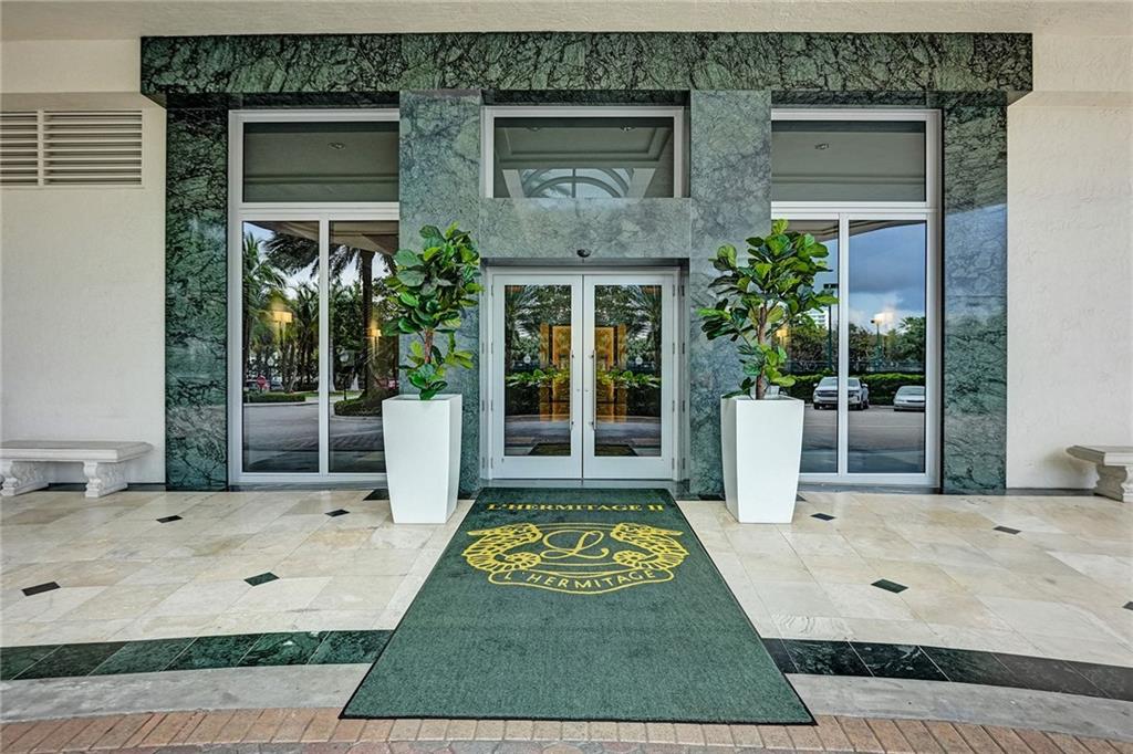 Stunning direct ocean views from every room of this two-bedroom two bathrooms luxury residence. The property features an open floor plan with a split bedrooms, floor to ceilings windows, a large balcony facing northeast, wood floors throughout, open kitchen with granite countertops and SS appliances. L'Hermitage is a gated complex with 24/7 security and a manned front desk, a high-rise resort-style complex sitting on 10 acres overlooking the ocean. Close walking distance to restaurants and shops. Amenities include valet parking, tennis courts, 2 pools, a poolside cafe, cabanas, tiki huts, a BBQ area, a private beach pavilion, a fitness center, a billiards room, a card room, and a library. The association allows 2 pets( any size) and rent for the first year of ownership.
