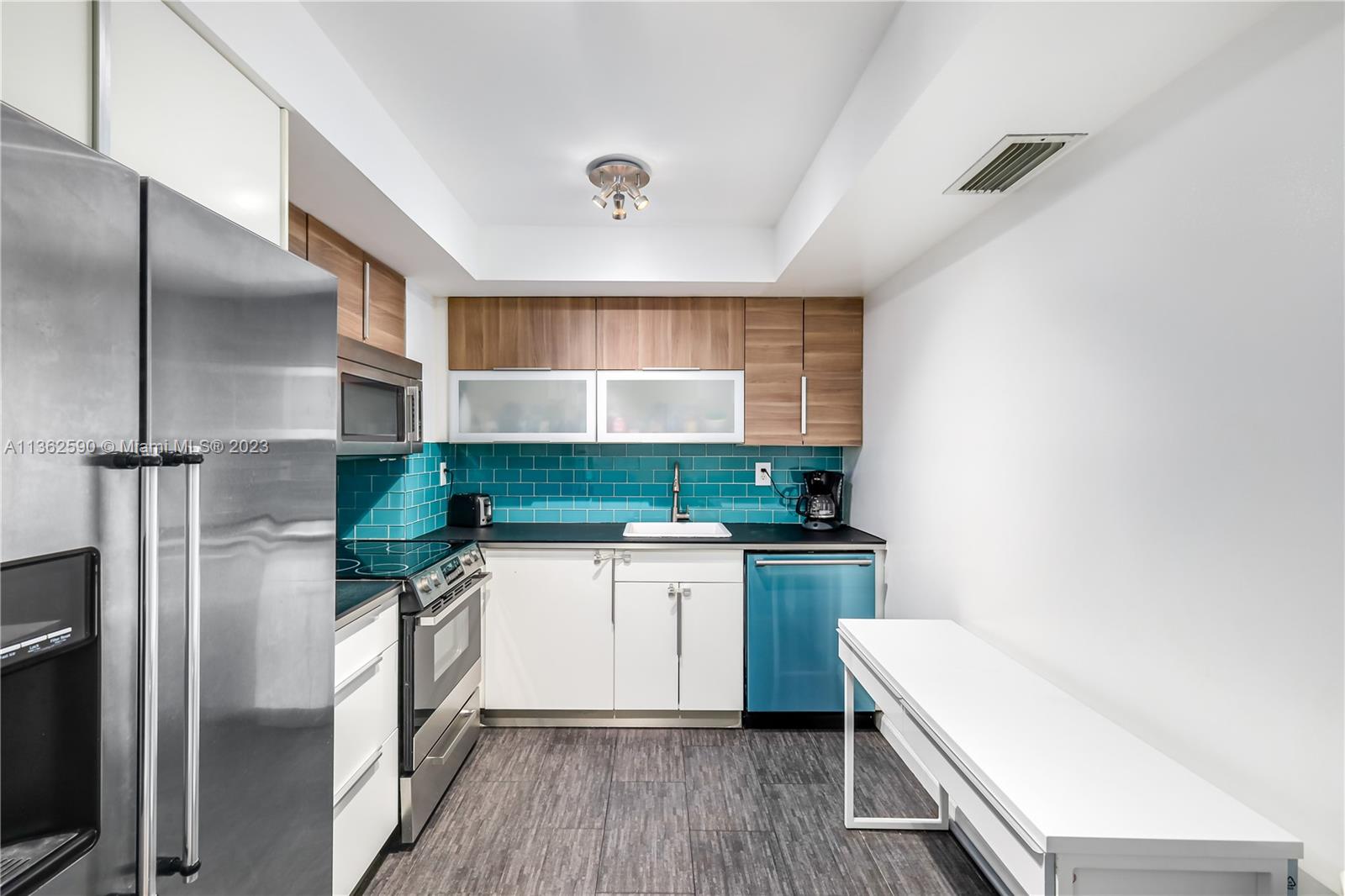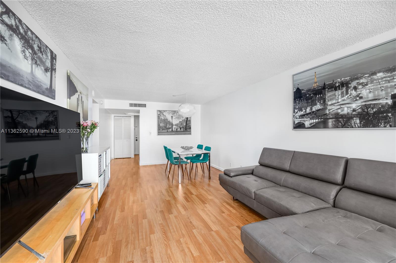 Best price in oceanfront building completing gorgeous renovation with all assessments paid by seller! Fantastic updates: new impact floor to ceiling glass & modernized exterior already completed and new hallway updating in process. Perfect time to buy-Sellers are relocating to Europe & are ready to sell. Incredible floor plan that allows for a second bedroom/den area that has direct views to the ocean. Porcelain tile floors throughout, two full updated bathrooms w/glass shower doors & modern finishes. Spacious eat-in kitchen w/stainless steel appliances. Great closet space including huge walk-in. Large balcony, central a/c, covered garage parking-this one really has it all. In perfectly located full-service oceanfront building w/beachside pool, gym, community room, 24 hr security & more.