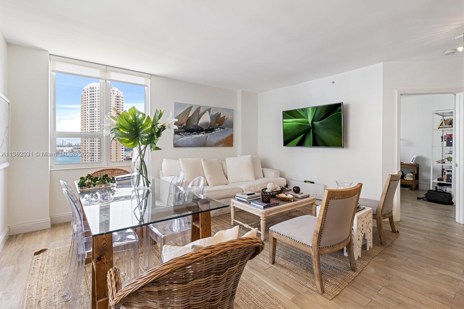 Completely upgraded corner unit in the heart of Brickell Key with beautiful city and bay views at exclusive Courvoisier Courts building. The unit features 2 fully renovated bedrooms and 2.5 bathrooms with an updated and beautiful kitchen with quartz countertops and elegant mosaic backsplash, porcelain floors throughout and an outstanding open balcony. Amenities include: pool, renovated energy, spa, racquetball courts, 24 hours security, valet and billiard room. Walking distance to all Island amenities like running track, mini supermarket, beauty salon, restaurants, 2 parks, picnic area, and much more!