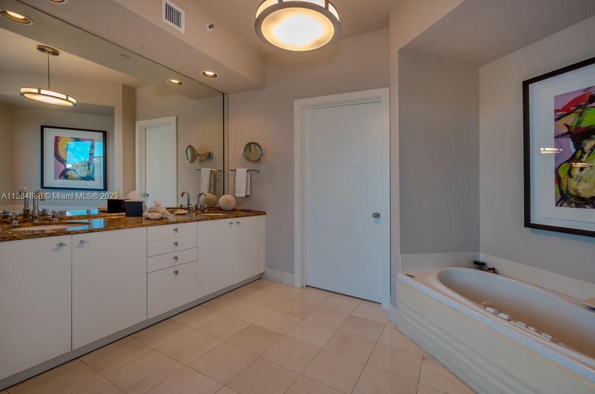Best deal price per sqft. in the building. Beautiful, pristine, renovated two Bedrooms in prestigious Portofino Tower. Bay views, overlooking the pool. A clean modern design and semi-private foyer. New updated amenities. Full amenity luxury building with world class spa on the 29th floor, tennis, pickle ball, valet, concierge services. All assessments have been paid. Be part of the South of 5th lifestyle. Just steps to the ocean, marina, park and fabulous restaurants. Note; Avail for showings on Thursdays.