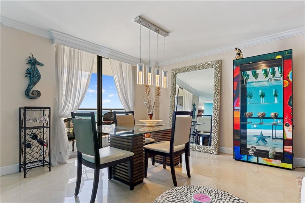 Wonderful high floor unit in Pompano Atlantis overlooking the ocean and located at the edge of Briny Avenue. Spacious & completely renovated, 2 bedroom, 2 bathroom condo is sold completely furnished & turn key. Featuring impact windows, beautiful porcelain tile floor throughout, kitchen with granite countertop & stainless appliances, extra storage & underground parking. Cable & internet included in monthly fees. This oceanfront building offers a well-equipped fitness center, sauna, heated pool, BBQ and beach chairs, lounge & party room. 24/7 security. Building 50-year recertification in progress. Recently repainted, the building also features new glass balconies. Upcoming remodeled lobby, lounge room, corridors and parking garage. Walk to restaurants, grocery stores, pharmacy and more.