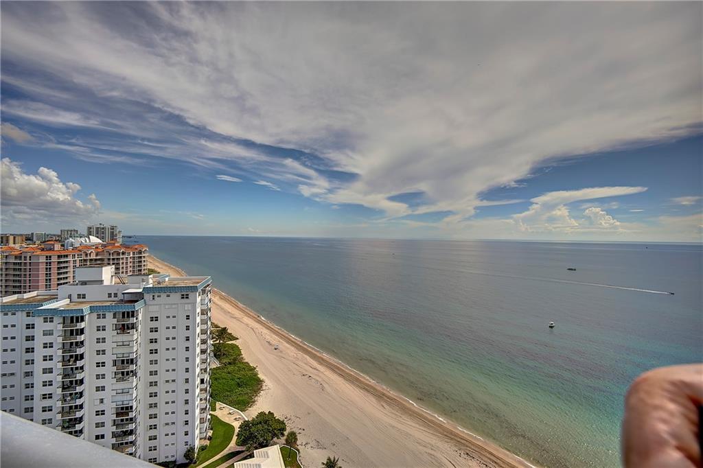 Welcome to paradise!! Rarely available AQUAZUL 3 bedrooms 4.5 bathrooms PLUS den!! Over 3000 sq. ft. of A/C space. High floor NE and NW 180 degree views of Ocean and Intercostal unit with breathtaking views from every room!!! Enjoy 4 balconies, 9 ft ceilings, private foyer with direct secure elevator and tons of natural light. Designer features include: remote blinds, hardwood floors, surround sound, custom closets, chef's eat in kitchen, Miele/Sub zero refrigerator and Italian Snaidero cabinetry. Full building with private beach set ups, resort style heated pool, state of the art fitness center and 24 hour doorman. Aquazul is located in the and quaint town of Lauderdale by Sea which offers to 2 piers, restaurants, shopping and easy access to major roads.