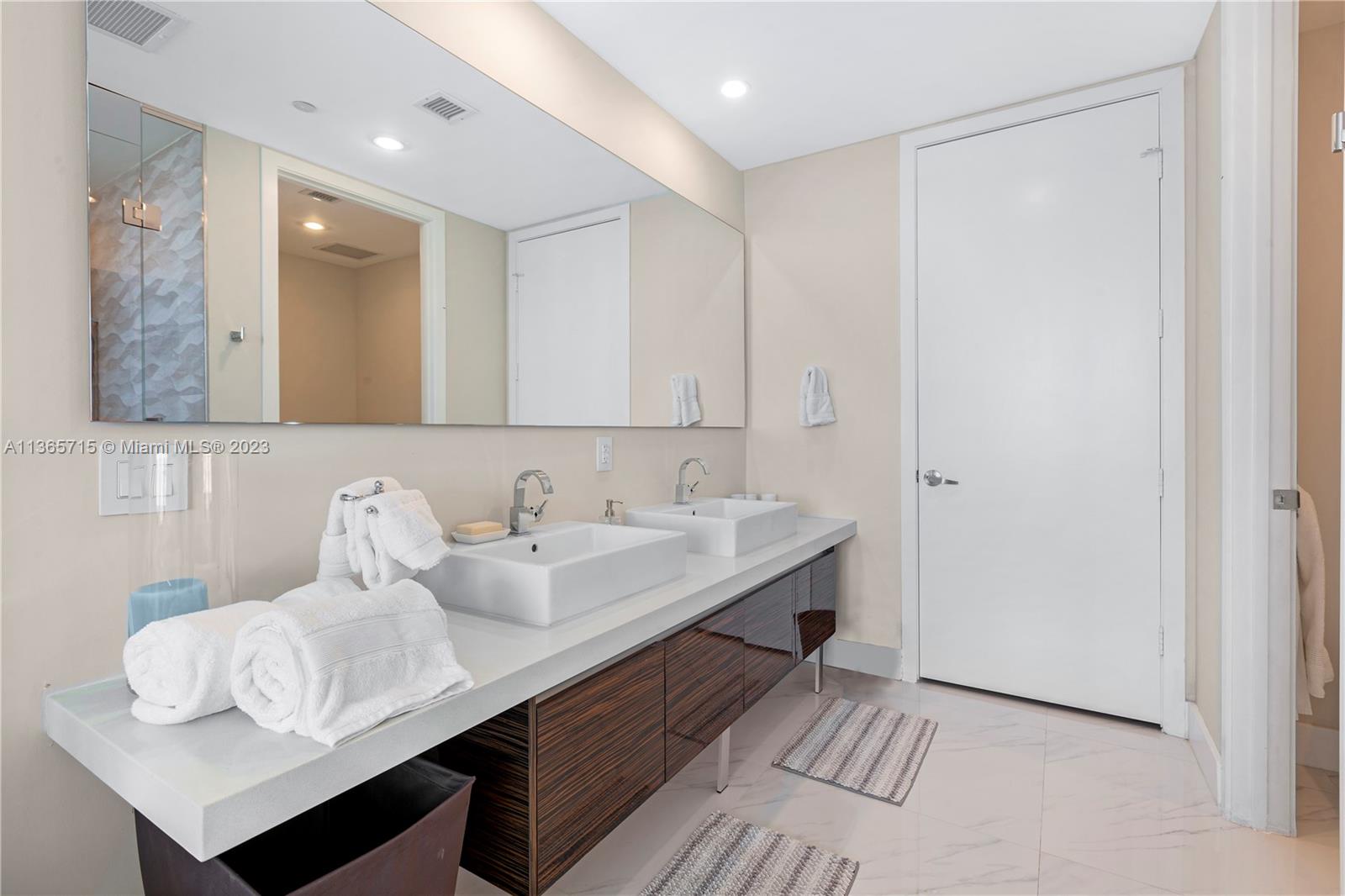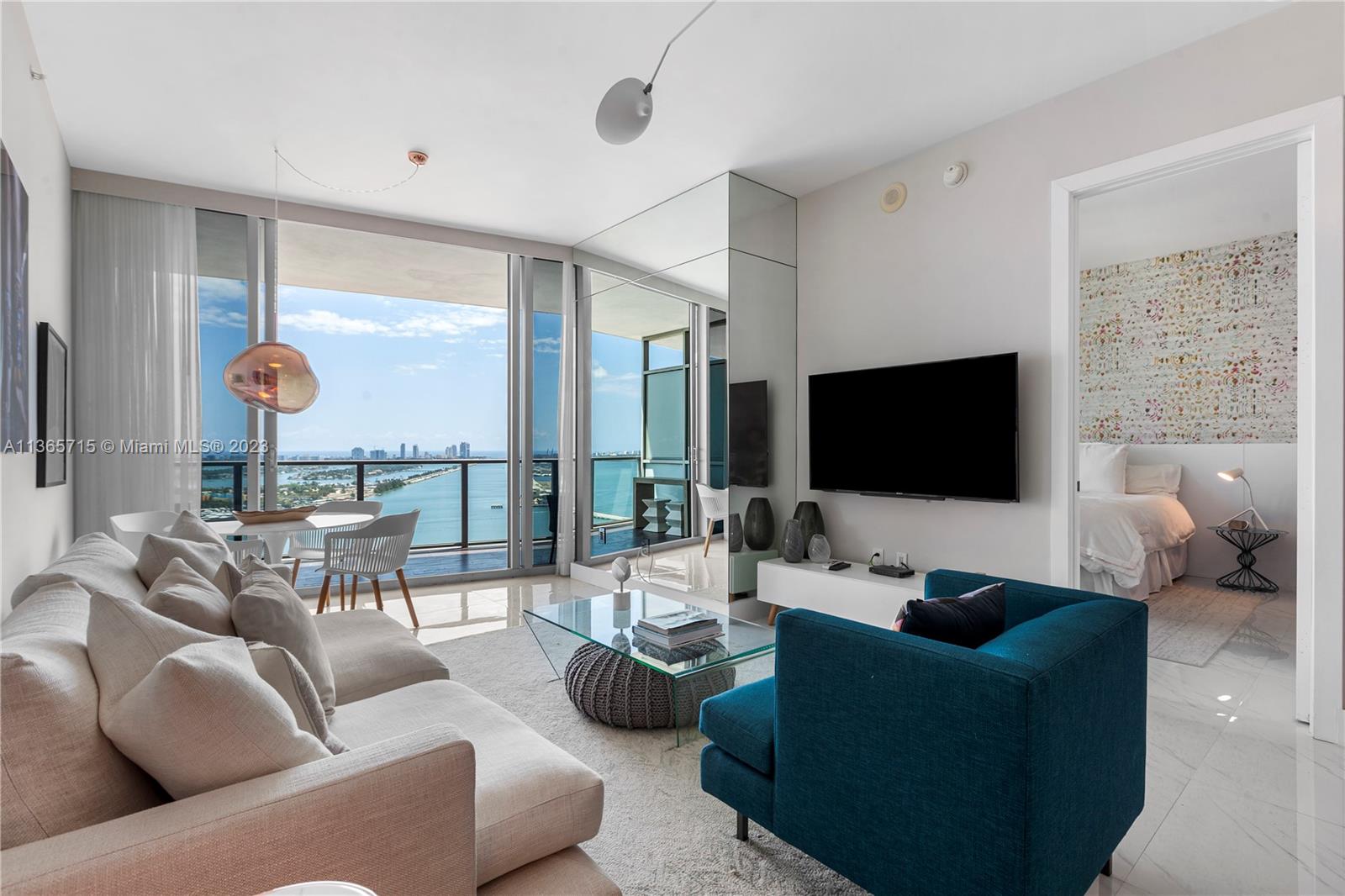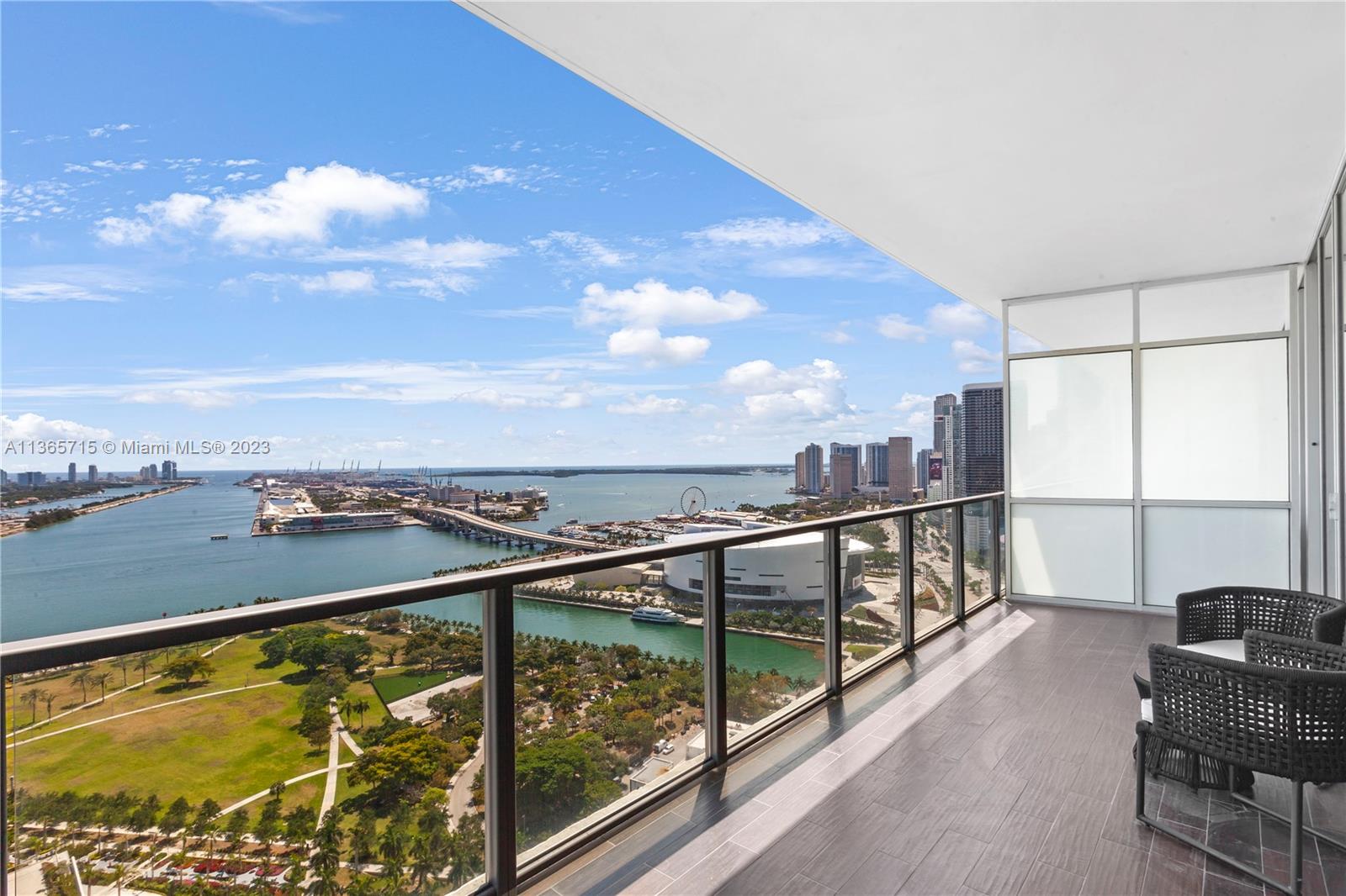 Stunning views from this turnkey very stylished 2BD & 2.5BA at the 32nd floor of Marquis in downtown Miami. This professionally decorated 1,498 SF apartment is one of kind. Exquisite light fixtures, modern furniture, and Viking kitchen appliances. Breath taking views from living room, kitchen, main bedroom and from the large balcony, all facing Biscayne Bay. The second bedroom is incredibly spacious. Private elevator foyer, hotel style amenities and the central location, make it very special and unique. This apartment has everything that one desires and it is in an impeccable condition, making it ready for you to start exploring the PAMM Museum, the Science Museum, Heat Arena or the quick drive to design district or Miami Beach (Beach club membership included) . Offered fully furnished.