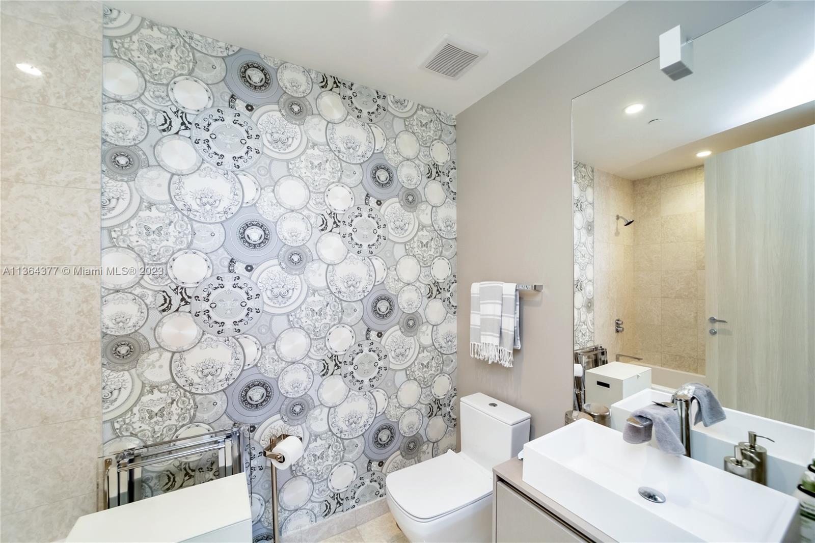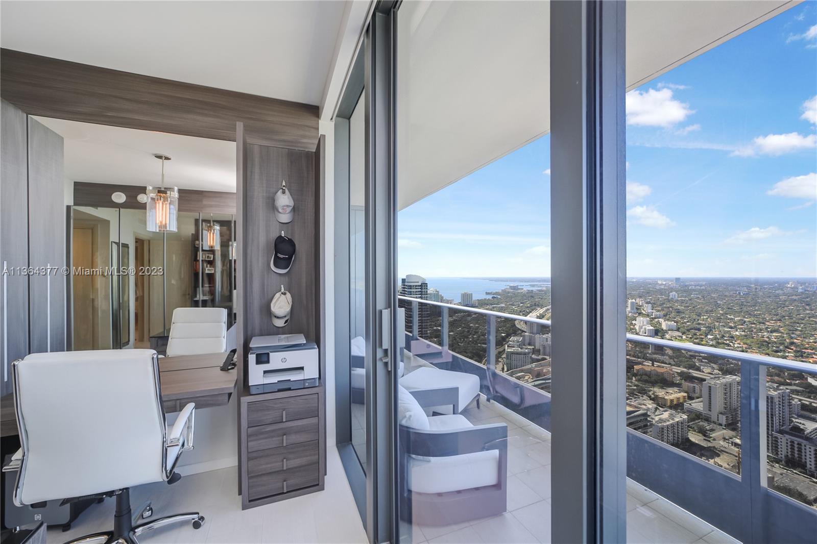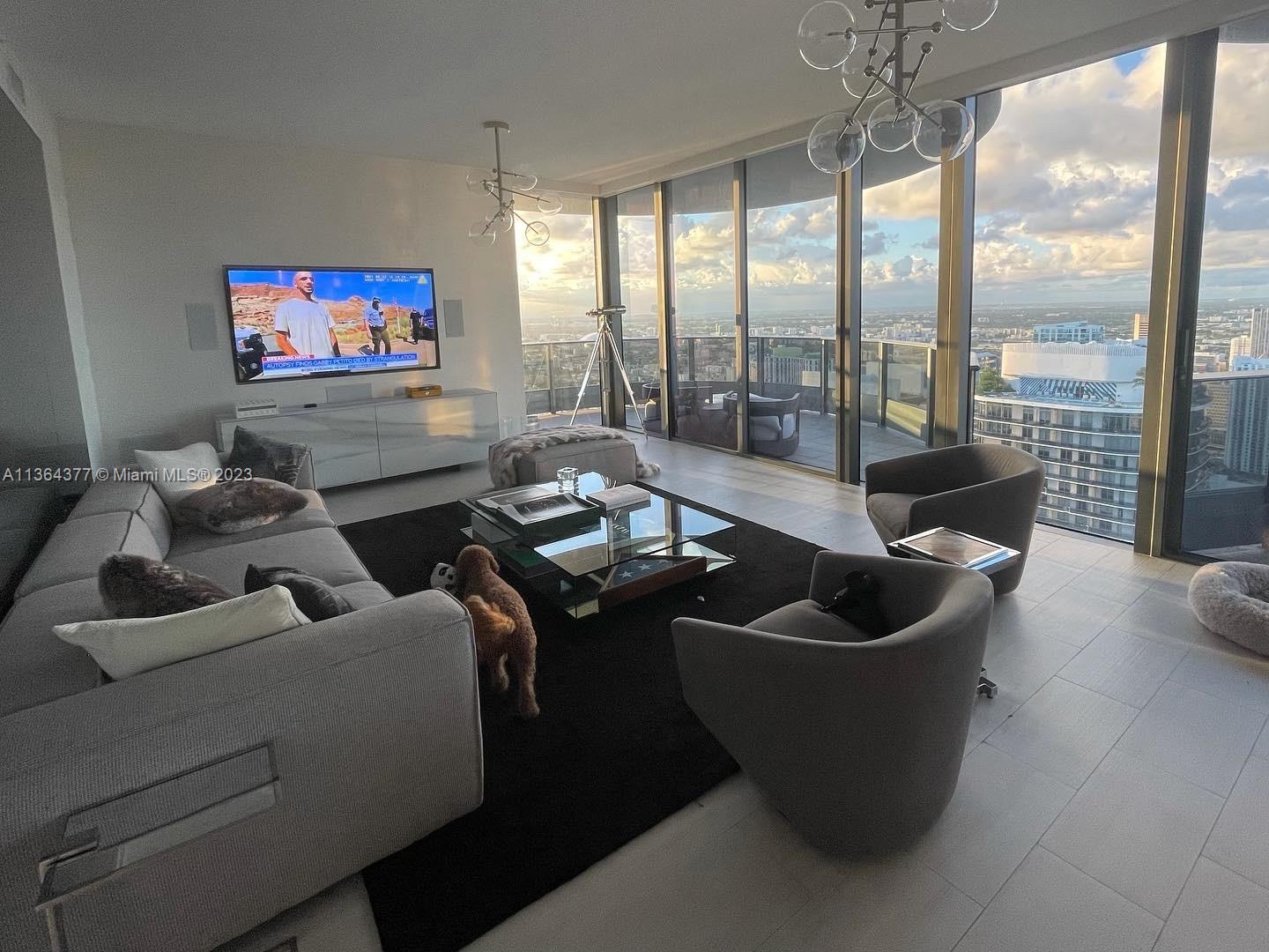 Enjoy breathtaking sophistication in this superb Brickell Flatiron 60th FL penthouse, fully furnished 1912SF (Per developper)! Soaring above the Miami skyline, this unit spares no expense with its 10 feet ceilings, custom Snaidero kitchen & professional grade Miele appliances, premium Travertine flooring in living areas and Italian marble flooring in bathrooms, exquisite custom designed closet cabinetry. Over $200k+ spent in upgraded kitchen, automation electronic (lights, sound system), Shades/Blackouts.... Elliptical wraparound balconies open up to dramatic panoramic bay & skyline views. Indisputably the most luxurious building in Brickell, one of Miami's hottest area, Flatiron's acclaimed amenities include 1st-class wellness and recreational facilities on the top floor:Pool, Spa, gym