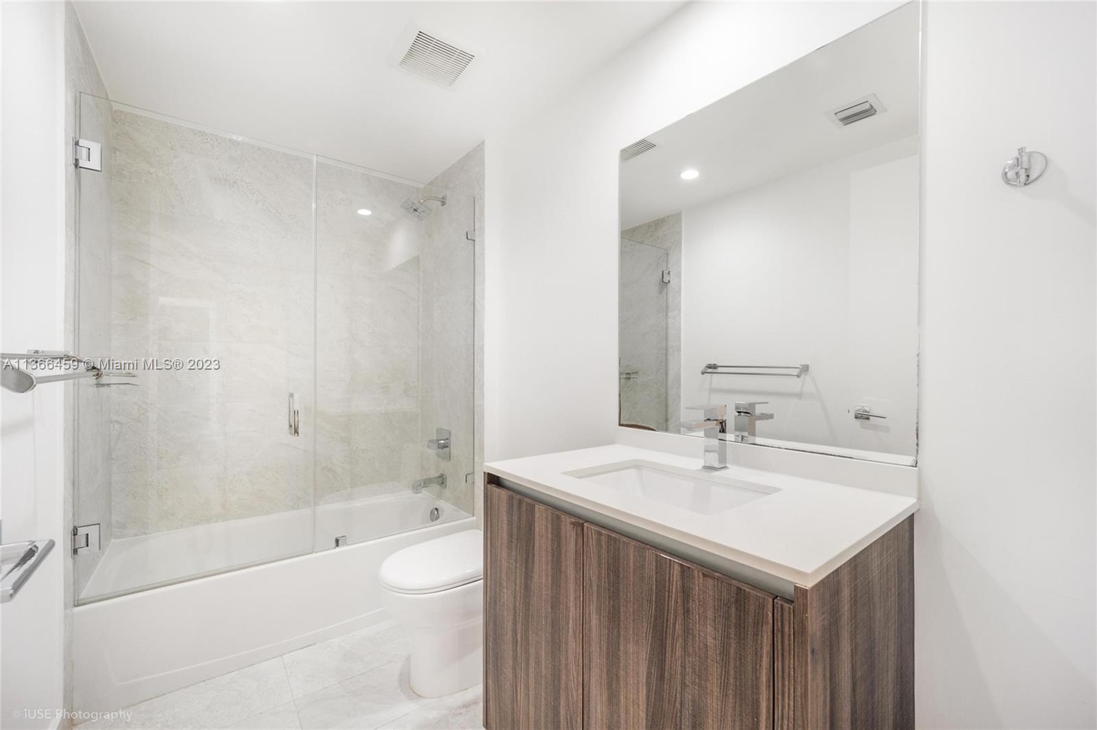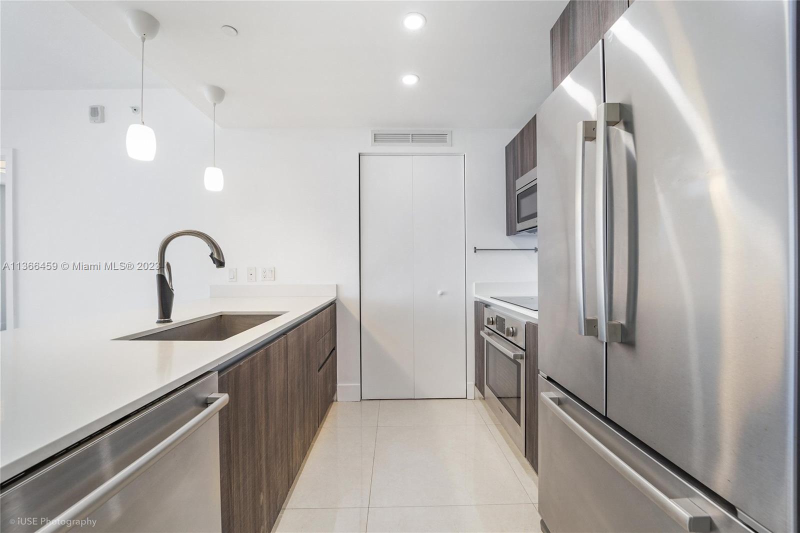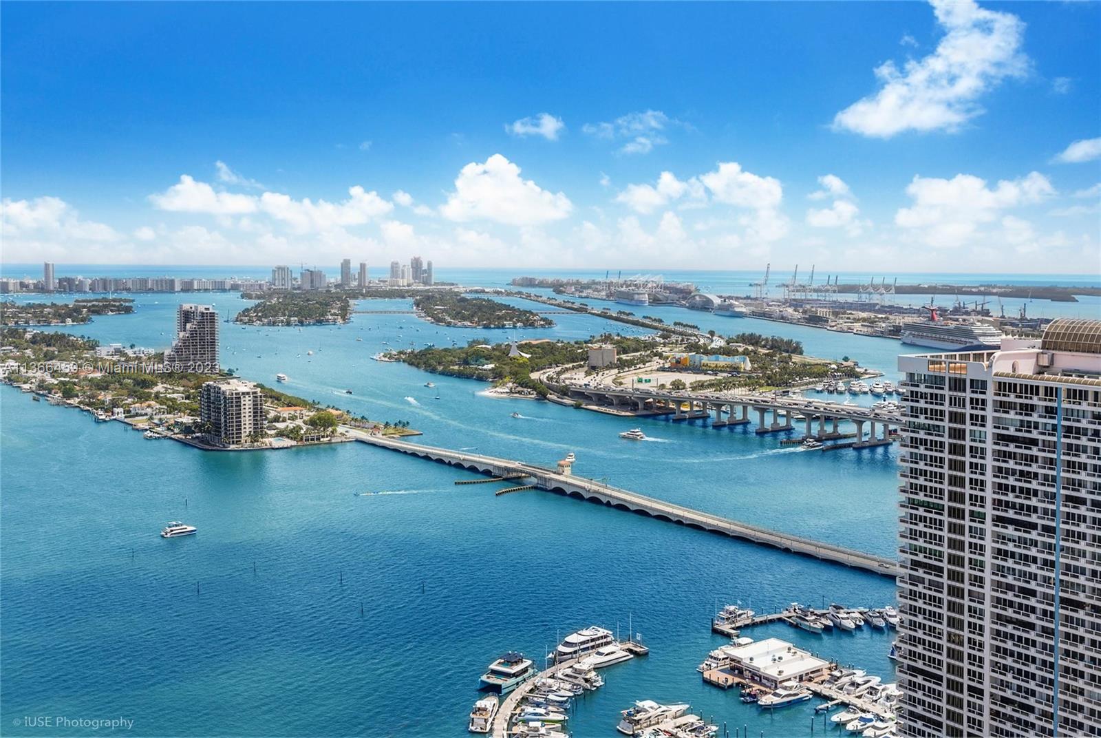 Rarely available -08 line, this high floor one bedroom + den residence features private elevator, private foyer, and unobstructed views because it clears the building next door. The den can be easily converted into a second bedroom with a sliding door, it has direct access to the full second bathroom and its own closet. Ceramic flooring throughout, quarts counters, stainless steel appliances, window treatments, and an oversized balcony with open views of Biscayne Bay and sunsets. Full service luxury building with two heated infinity pools, hot tub, spa, sauna, steam room, lounge, BBQ, business center, state of the art fitness center, movie theater, kids playroom, valet and concierge service, and more.