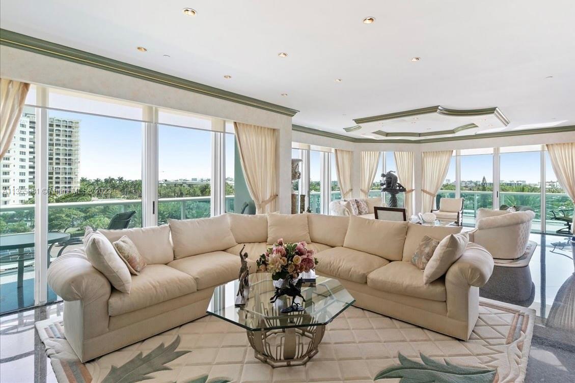 PHENOMENAL DEAL! Live the luxurious Bal Harbour lifestyle in this stately furnished home at the prestigious Palace, one of Bal Harbour’s finest full-service oceanfront buildings. Upon entering this bright SW corner condo from the private elevator foyer, you'll see bay and city views through walls of floor-to-ceiling glass. From the wrap-around balcony, enjoy stunning sunset & ocean views. This 3,110 sqft condo has grand living & dining spaces perfect for entertaining, an eat-in kitchen, 2 huge bedrooms, maid’s quarters & 4.5 baths. A 3rd bedroom can easily be added. Resort-style amenities include: restaurant, tennis court, heated pool, gym, full spa, salon, pool & beach service, valet & concierge services. Renowned Bal Harbour Shops & fine dining are steps away. Poolside cabana available.