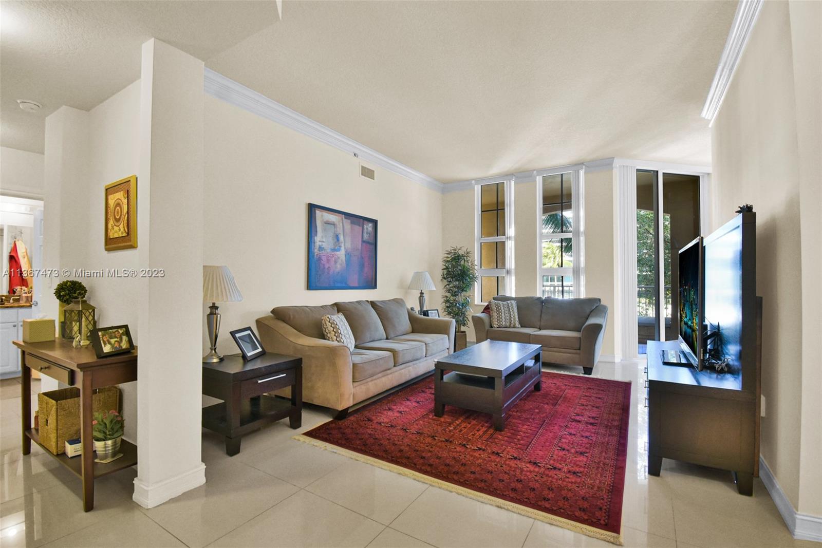 Location, location, location. Enjoy living in the gorgeous Mediterranean-style building of Alaqua. Located in a beautiful and quiet community, this spacious and bright 3 bedroom 2 bath condo in the heart of Aventura offers a spacious private balcony with a canal view., and 10 Feet Ceilings. Walking distance from shops and restaurants, approx. 3 miles from the Beach. . Amazing amenities such as a pool, gym, and party room. The apartment has a washer and dryer; the open-concept kitchen has stainless steel appliances, a granite countertop, a walk-in closet, etc. The unit has Italian tiles. This property includes 2 covered parking spaces. It is in mint condition and a pleasure to show. Low maintenance fee. Great rental potential for investors.