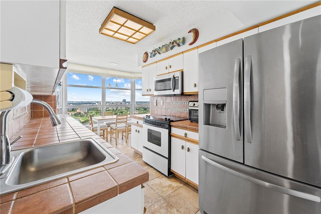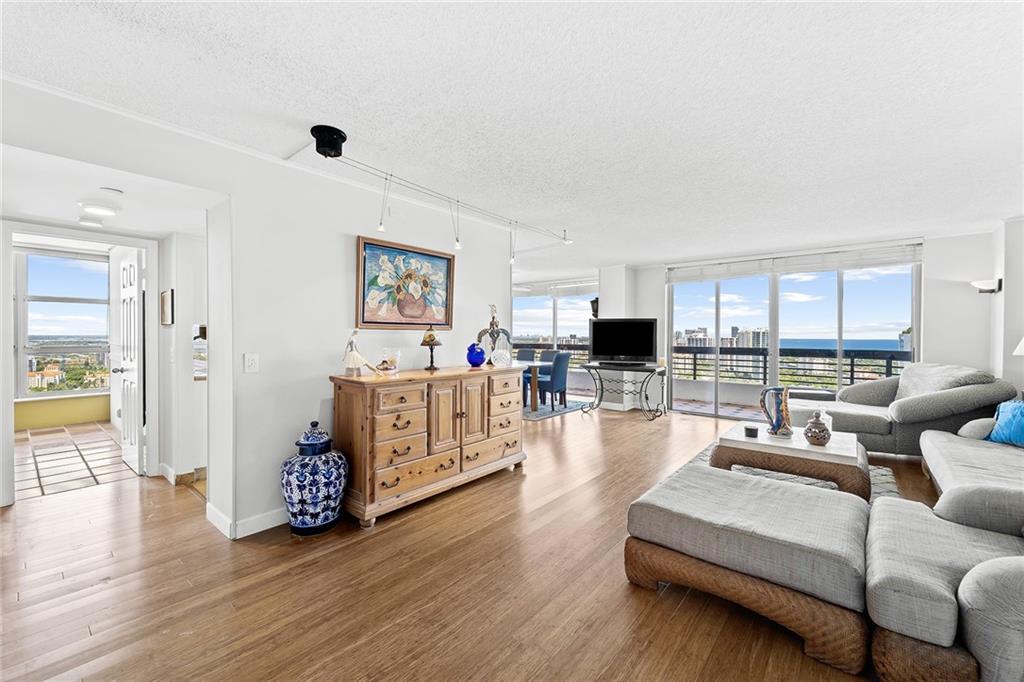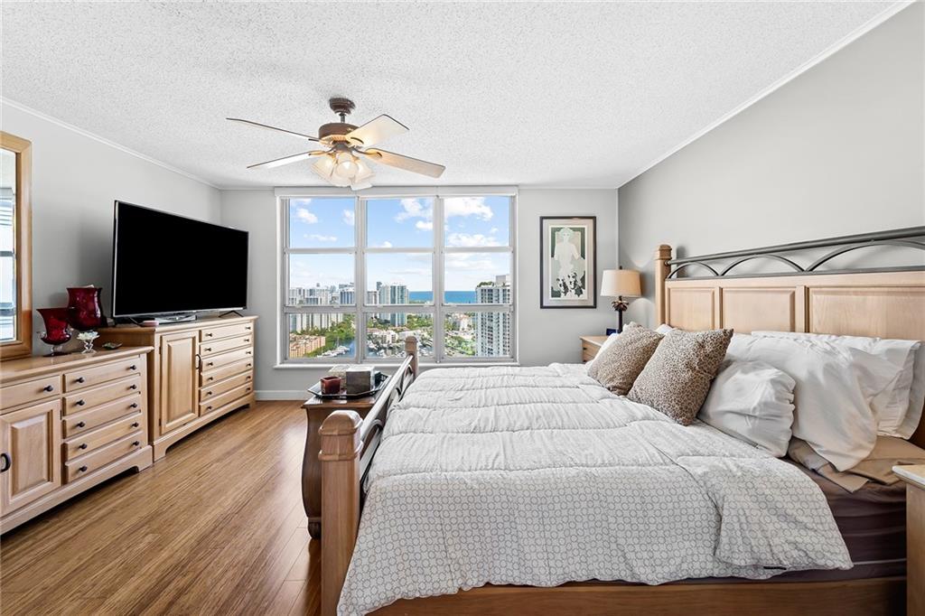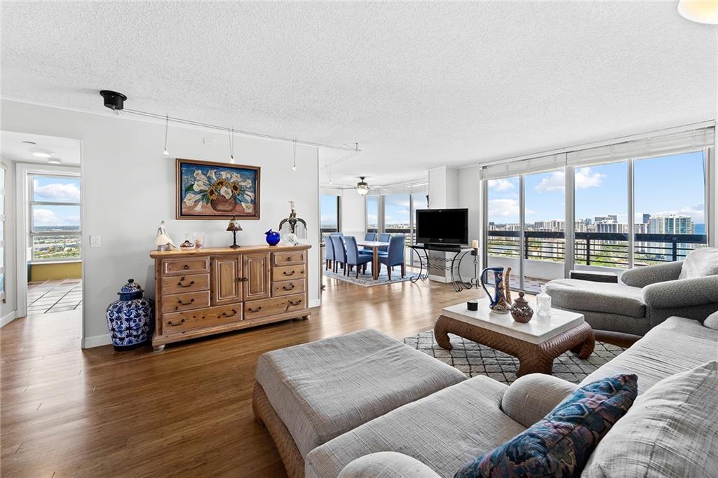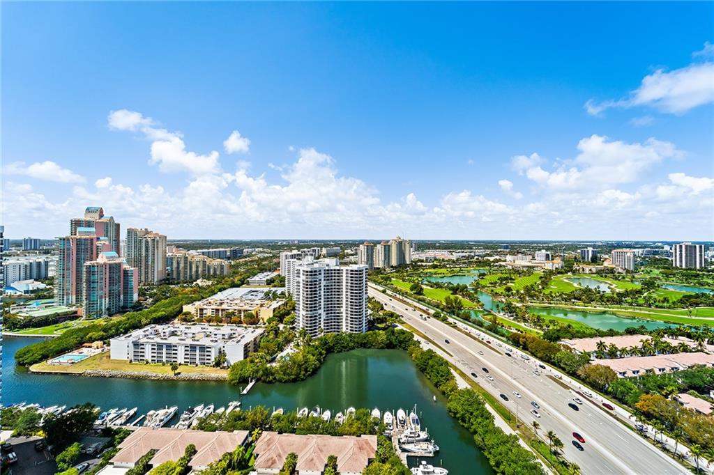 Welcome to heaven on earth. You can not beat the spectacular views from every room!! Look at the intracoastal, ocean, golf course and the Hollywood guitar while having your morning coffee. 2 bedrooms and 2 full bathrooms. Washer Dryer in unit. Unit includes a storage unit on the floor along with a second unit available for $400 a year. Parking is covered in garage. A second space can be purchased for a low cost. There is a $182 assessment for lobby renovations which ends in September. There is a $400 fee 3 times a year for the master association. Mystic Pointe has tennis, Pickleball, pool, beauty salon, restaurant and amazing security. There is also a marina which offers dock space if you wish to keep your boat right outside. Don't miss this opportunity!