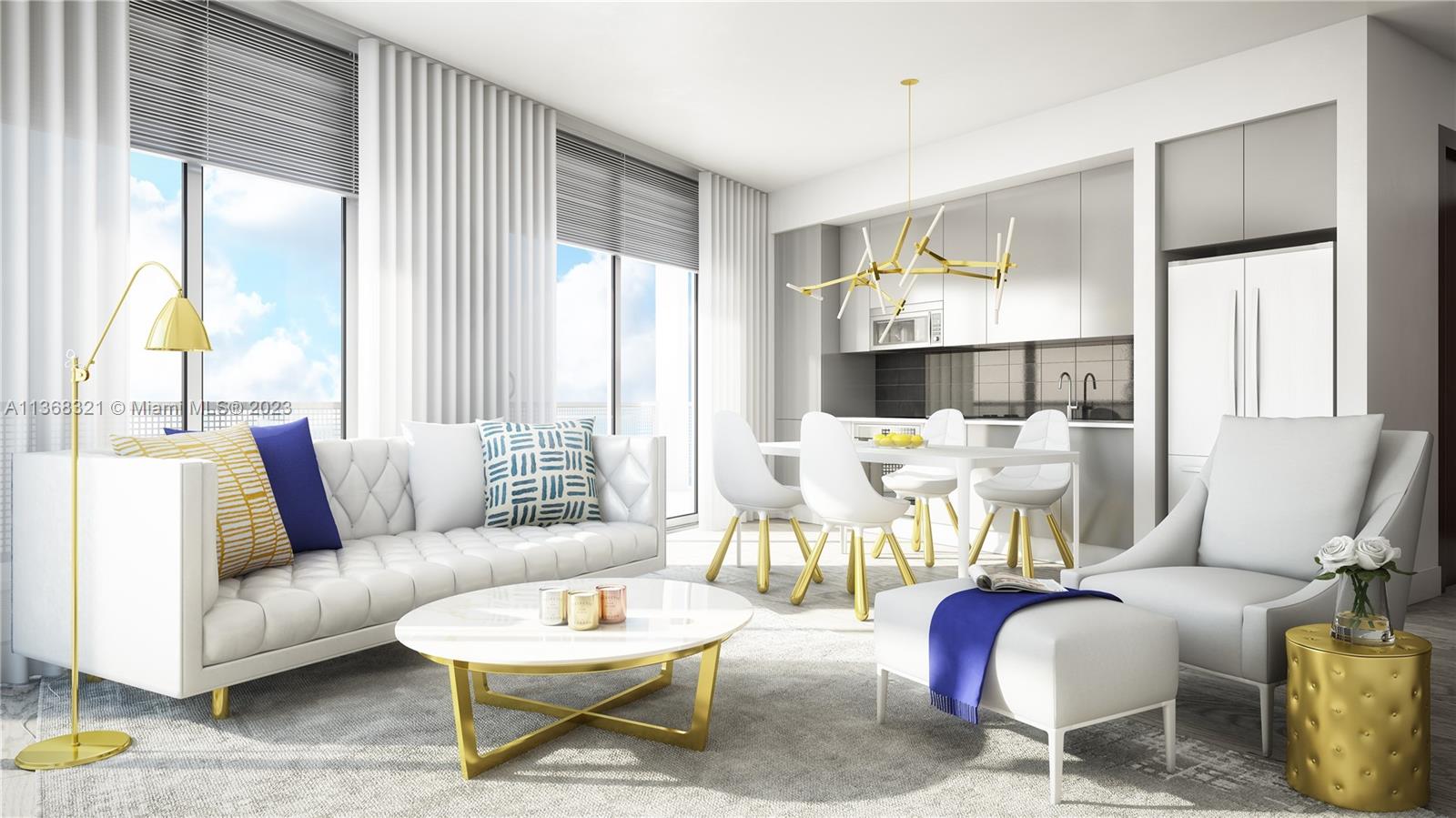 Envision yourself in a scale tower designed with unbelievable views in an oasis of amenities and 24/7 concierge ready to accommodate your every need. This unit feature’s premium contemporary Italian cabinetry with quartz countertops and backsplash. Whirlpool stainless steel appliances, including counter-depth, French-door refrigerator, cooktop, oven, microwave and dishwasher. Imported porcelain tile floors. All the bedrooms in this floor plan have access to a spacious terrace. Floor-to-ceiling impact[1]resistant, windows and sliding glass doors. 9’ ceilings. Spacious walk-in closets and prewired for high-speed communication.