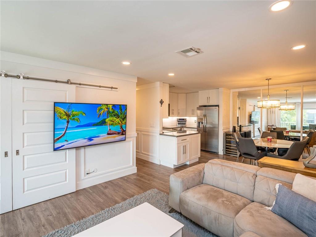 BOATERS PARADISE! Ocean access. No fixed bridges. Dockage up to 50 ft @$1.50 a foot includes water and electric. Totally remodeled gorgeous condo!. New kitchen cabinetry, new hardware, new larger farm style stainless steel sink, New lighting and ceiling fans, Added storage above the refrigerator. Stainless + porcelain back-splash, new under cabinet lighting. All new bathrooms and new vanities! New doors. All done with permits. Hurr impact glass and sliding doors, Full-Size washer and dryer, led lighting. Crown molding in main living areas. OK to lease 1st year. Great location! Very close to beaches. 6 tennis and pickle ball courts, gym,4 heated pools, (one on the intracoastal with bar), bike storage, barbecue area. Gated community. All furniture and tvs for sale.