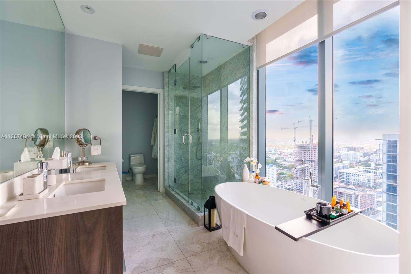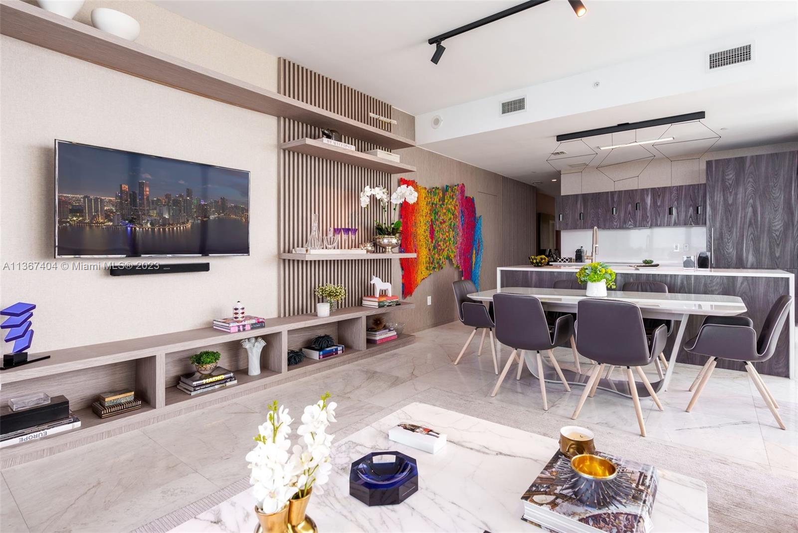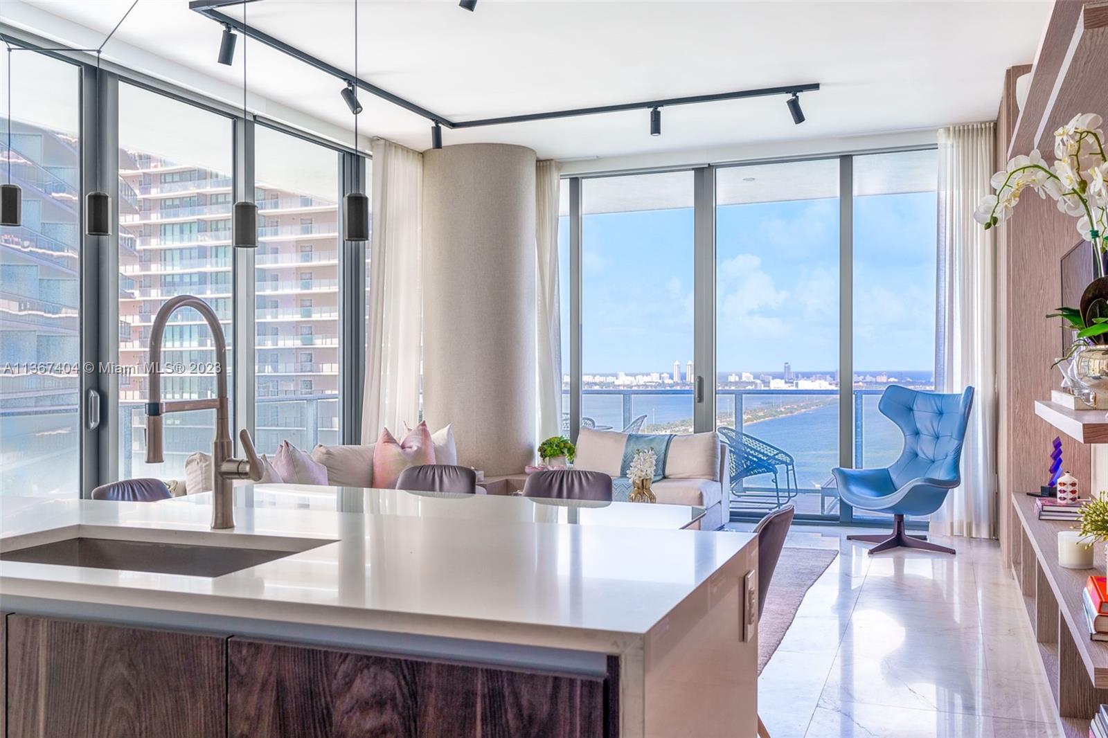 Turn-key, 3 bed/3 bath + Den corner unit in Gran Paraiso with panoramic water and skyline views. This immaculate decorator unit features an open concept floor-plan; east, north and west exposures with floor-to-ceiling windows and an 8ft-deep wraparound terrace with sunrise and sunset views. UNIT UPGRADES: Italian marble flooring throughout, Italian kitchen with Subzero/Wolf appliances, custom closets and millwork, custom motorized window treatments, 2 parking spaces. Furniture negotiable. ABOUT PARAISO: Built in 2019 and located in the heart Edgewater, Gran Paraiso offers resort living at its bets with amenities that include: Fitness Center, Pool, Spa, Sauna, Theater, Playground, Putting green, Yoga & Pilates Room + Valet.