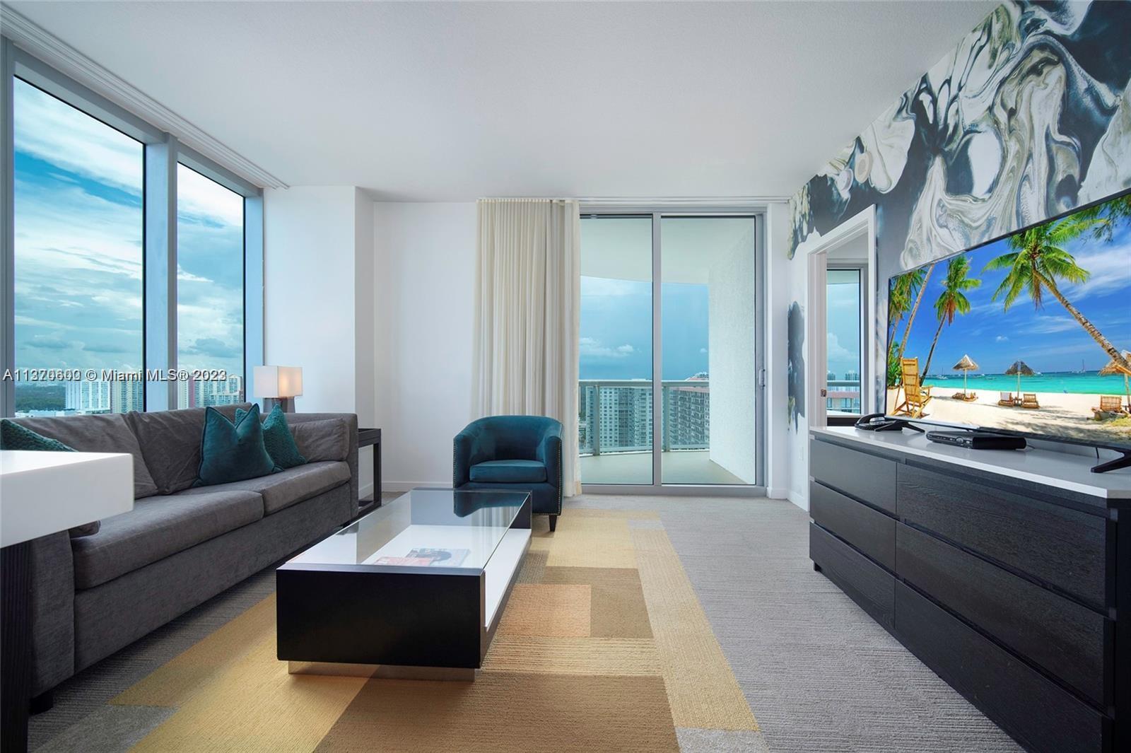 Spectacular location, excellent Investment opportunity 2 units together, fully furnished 2/2 Condo Hotel with private entrance allow rent it together or separate. with panoramic Ocean & City views. Lower penthouse. Exquisite modern style in the heart of the elegant Sunny Isles .Floor to Ceiling windows, fully equipped kitchen, SS appliances, designer bath fixtures & faucets & frameless glass shower doors. Enjoy the resort style amenities that include; private beach access; ocean front infinity-edge pool, Restaurant and Bar, fitness center, spa & cabanas.