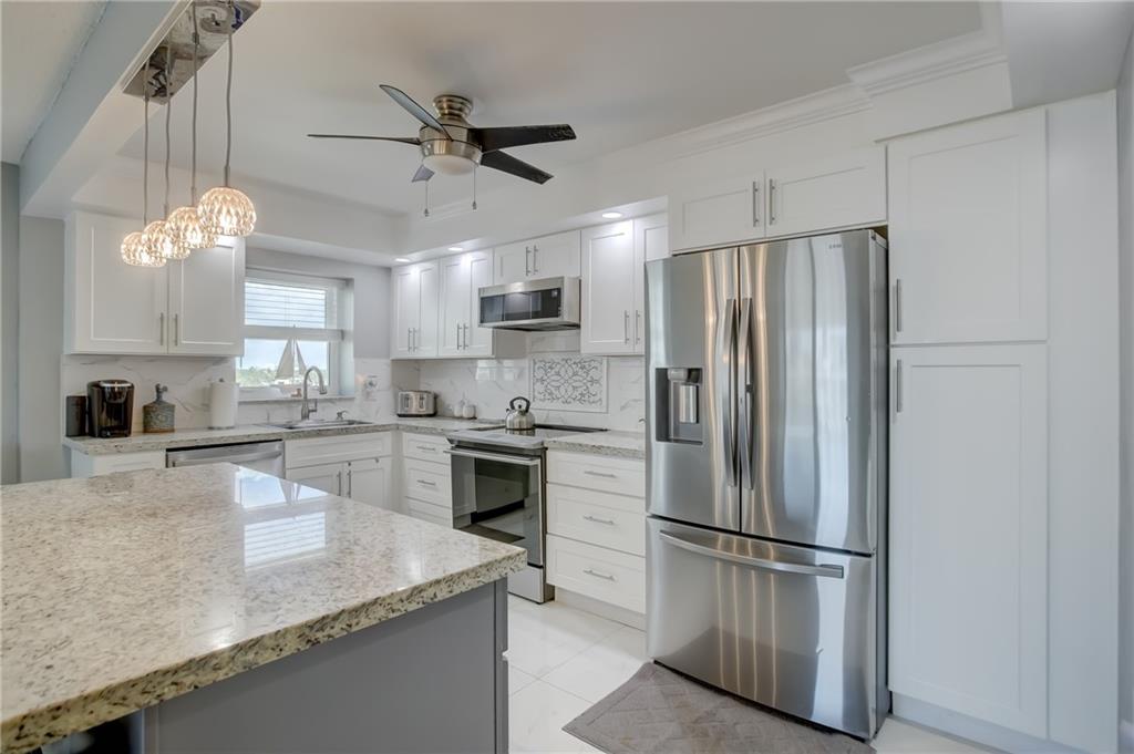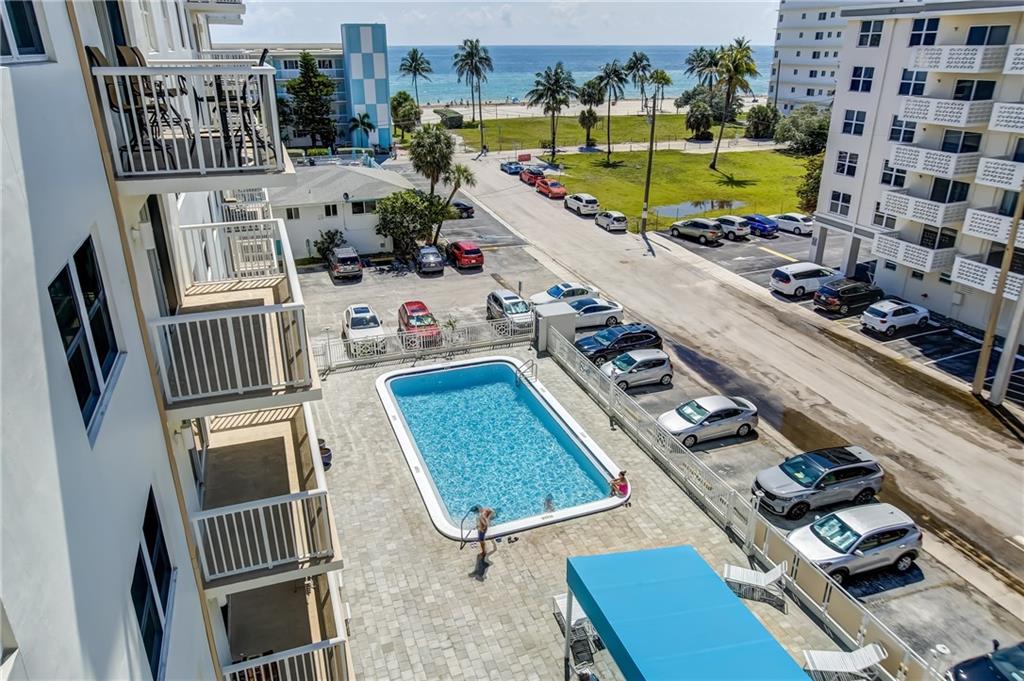 Enjoy Ocean, Intracoastal and pool views from this corner unit with wrap around balcony and railings. 2 oversized bdrms/2 bath, updated kitchen, new SS appliances, granite countertops and large island. Modern tiles throughout living area. Newly installed Hurricane impact windows and sliding door. New water heater and AC installed in 2020. The building features new roof, balcony and railings, pool, patio and barbecue area. Use of common laundry room, community room and individual storage unit. The condo has new roof and recently passed the 40 Yrs. Certification. No rentals. GREAT LOCATION. Close to boardwalk, shopping, restaurants, Aventura Mall, Gulfstream Park and Racing, Ft. Lauderdale Airport and I-95. Publix walking distance is being built.
