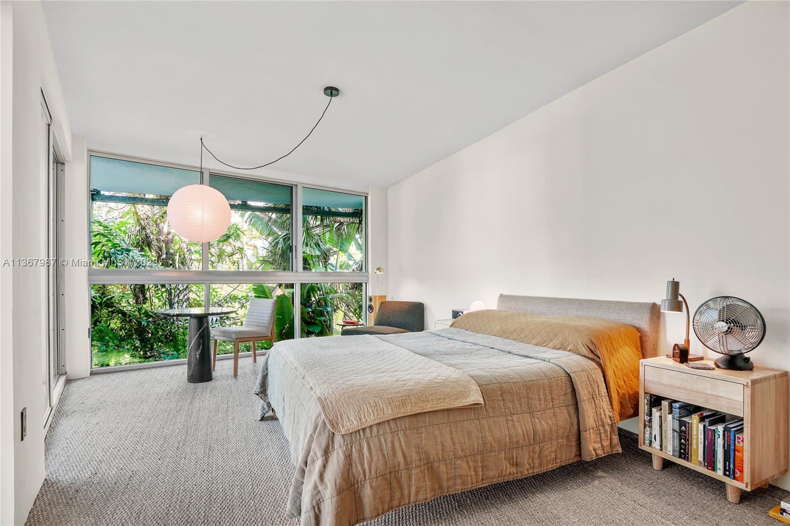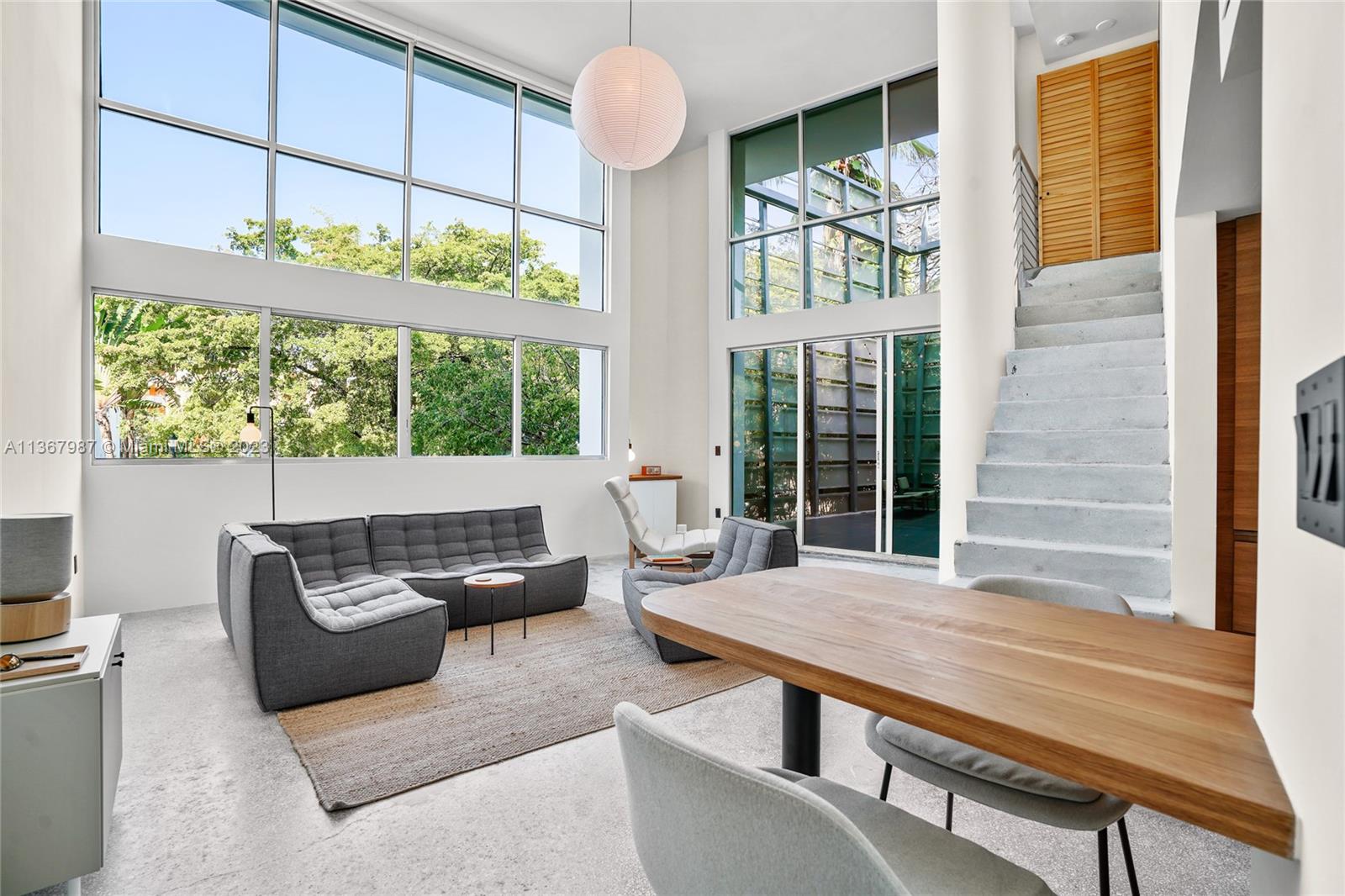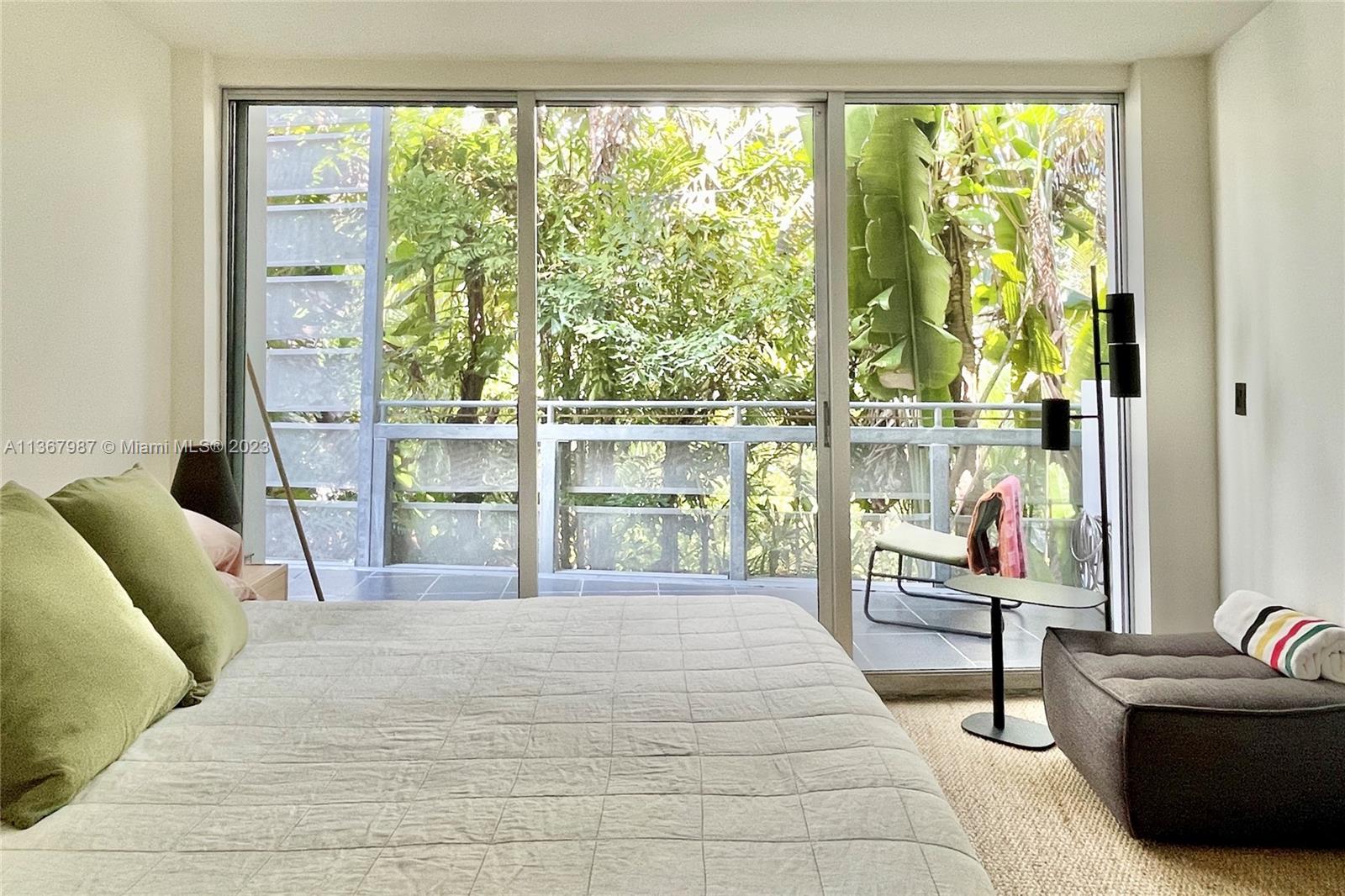 Ilona, 16-unit boutique building located in the coveted South of Fifth neighborhood. Designed by architect Chad Oppenheim, this recently remodeled, industrial-chic, corner loft has 2 bedrooms, 2 bathrooms, and 17' ceilings. Two big outdoor spaces surrounded by trees and tropical plants: a very private terrace and a balcony off the main bedroom. Top-of-the-line appliances: Fisher & Paykel, Perlick, Miele. Natural oak kitchen cabinetry by Danish design studio Reform. Terrazzo floors and many windows facing west for sunset light. Each bedroom has ample closet space and en-suite marble bathrooms. Main bedroom has extra space for working and relaxing, plus a washer/dryer. Includes parking space. Short walking distance to the beach, cafes, world-renowned restaurants, and South Pointe Park.