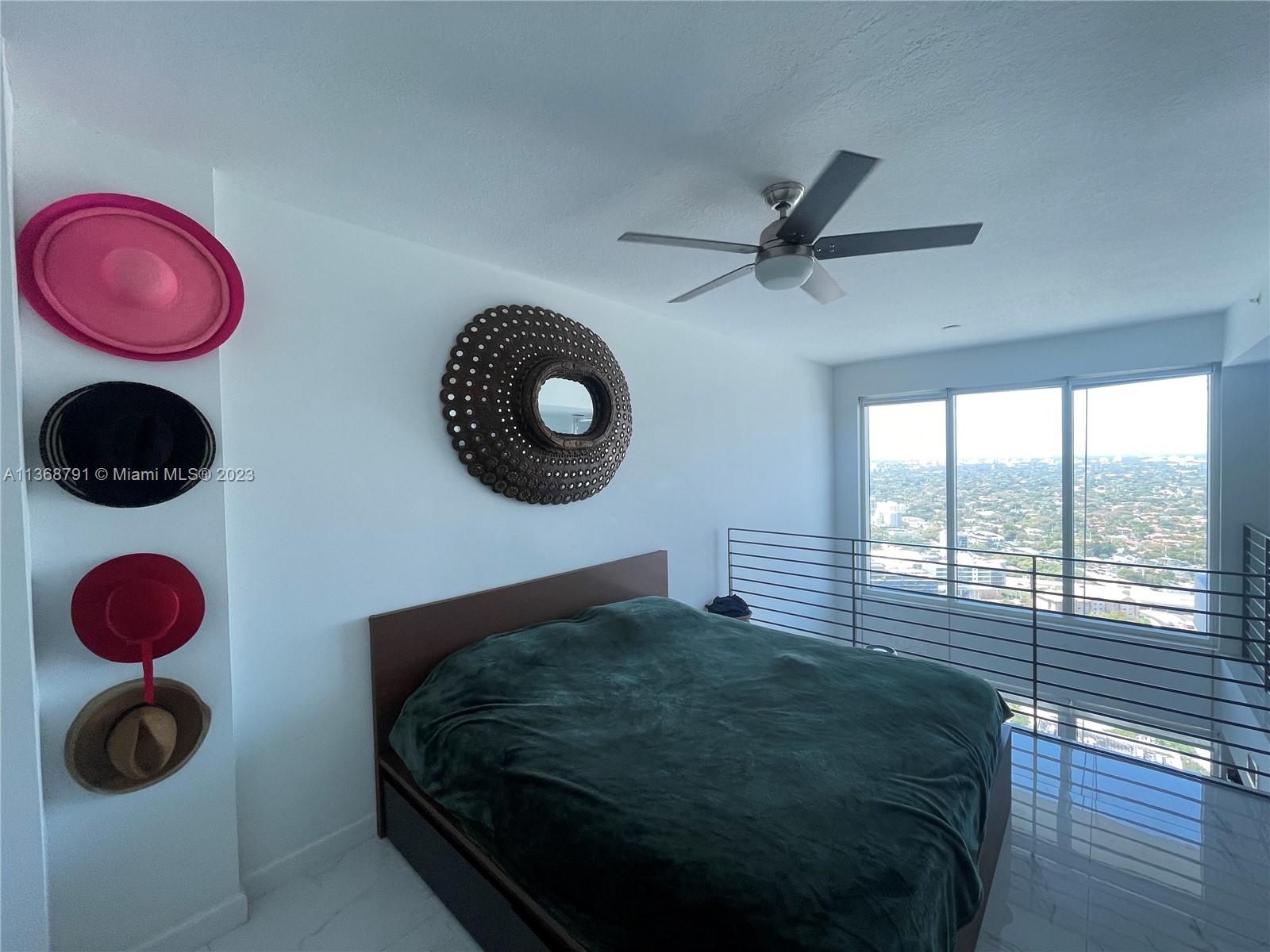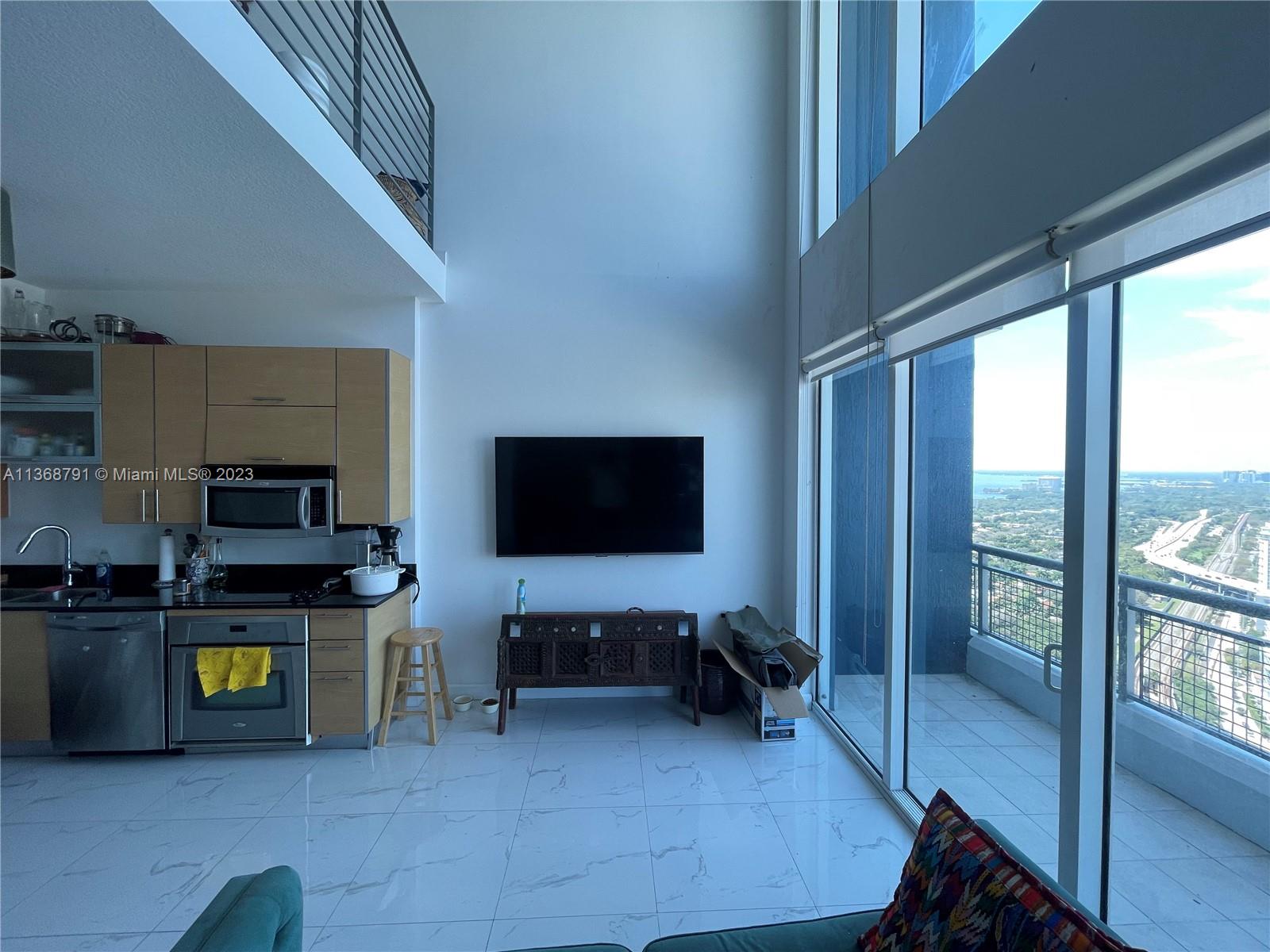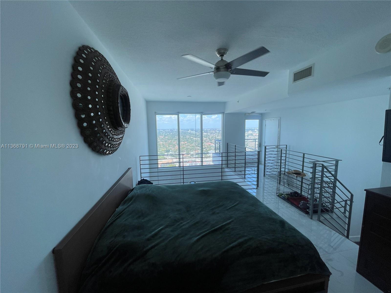 The biggest 1 bedroom floor plan with 2 full bathrooms in Infinity building. There are only a few units like this in the whole building. Soaring ceilings and spectacular city and water views. Upgraded with tile floors throughout and cherry wood on the staircase. Large masted bedroom and closet. Perfect unit for an end user or investor in the heart of Brickell. Must see to fully appreciate