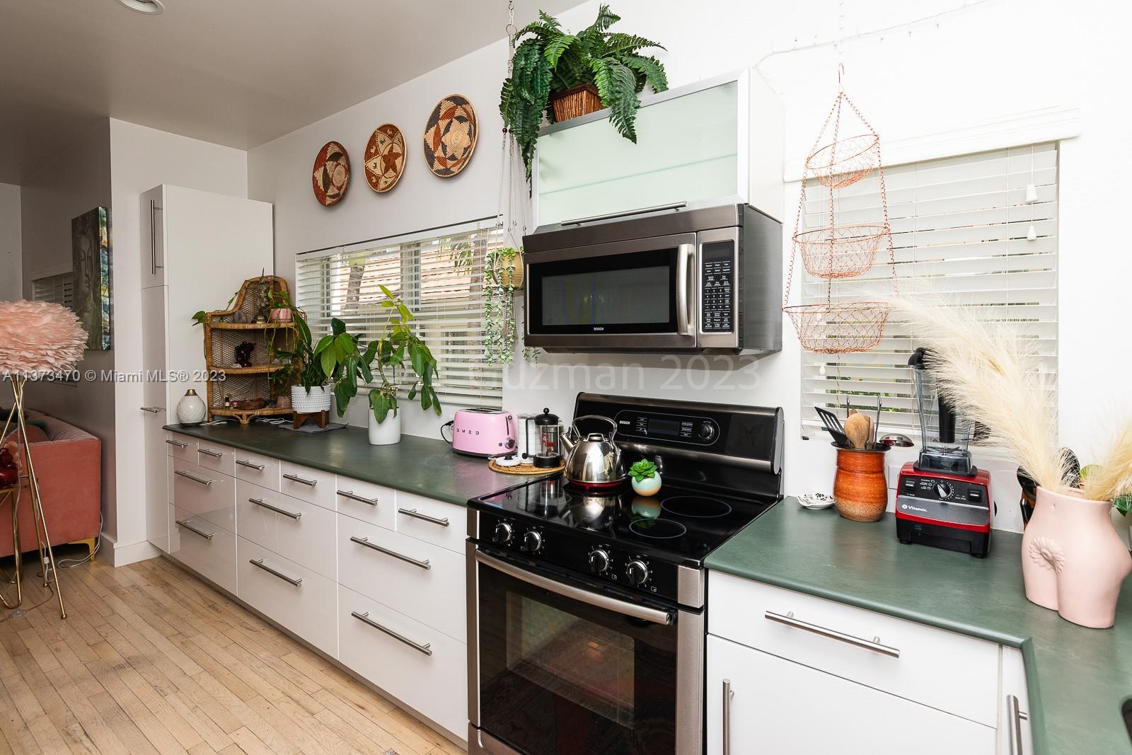 Charming modern and fully renovated top flor unit with deeded parking space. This beautiful unit features hard wood floor, stainless steel appliances, washer & dryer inside, central AC, dishwasher a lot of cabinet space and most importantly unit comes with 1 parking space (Deeded) parking is a must in South Beach. Great building fully renovated and great location close to everything Flamingo Park-Lincoln Road and more. Great value great opportunity to own your perfect condo on the Beach.