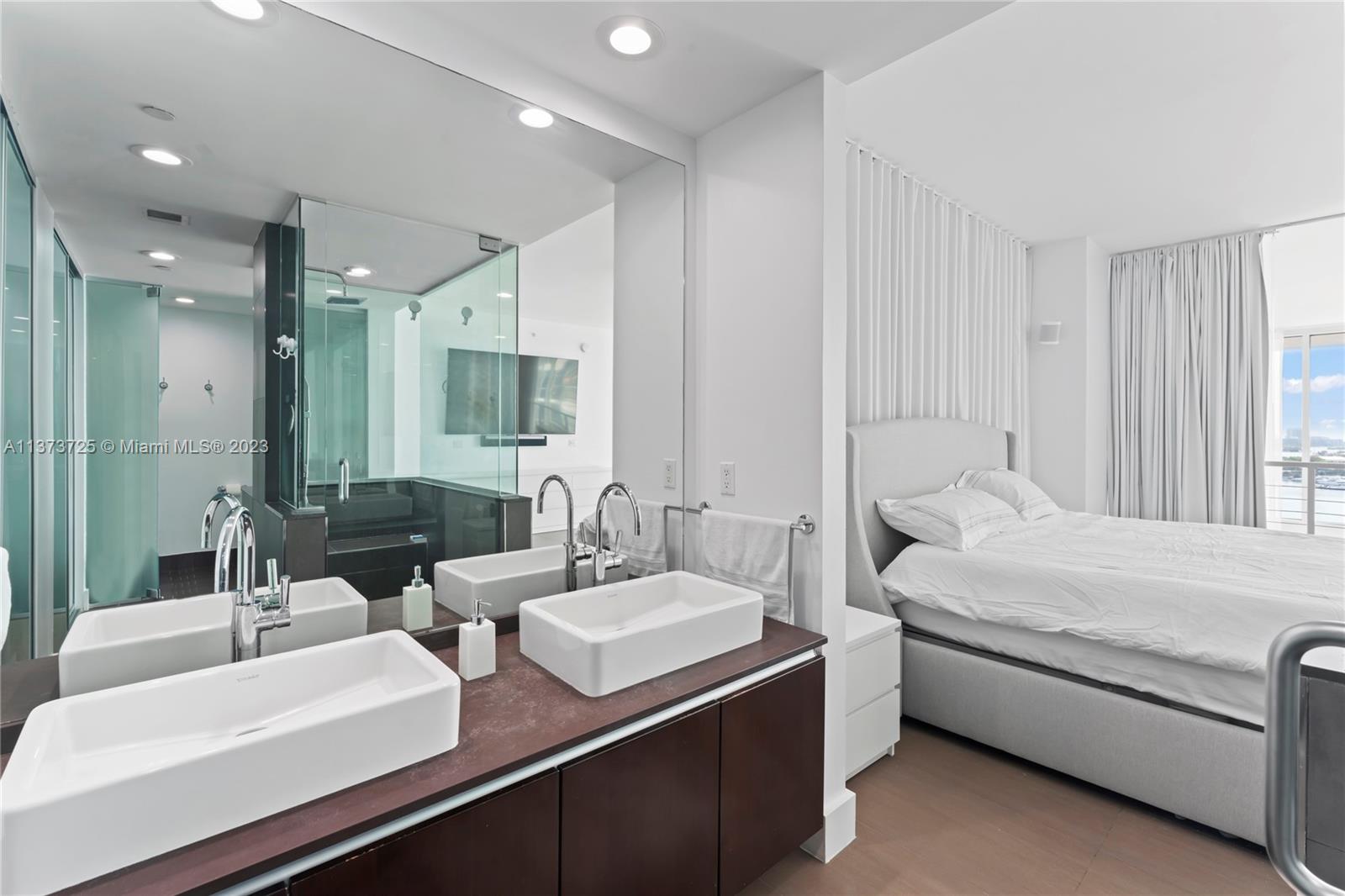 Welcome to the prestigious boutique condominium at Ten Museum Park! Designed by Chad Oppenheim, with only 200 units. In the heart of downtown Miami, this 04 corner unit has expansive walls of glass providing forever unobstructed bay views. These units rarely hit the market and offer 1730 SqFt of living space, 2 beds and 2.1 baths, and 20 Ft soaring ceiling. Unit has 2 new ACs, new full size LG washer/dryer, new dishwasher, new paint, and upgraded lighting. The building has a world-renowned spa with steam room, sauna, hot tub, 5 pools, cycling classes, yoga, 2 gyms equipped with Peloton machines. Includes 24-hr concierge, 2 valet parking spots, and an assigned climate controlled storage unit. If you prefer to lounge at the beach, the condominium belongs to Bentley Beach Club.