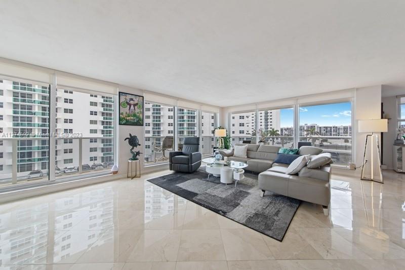 As you enter into this one–of-a-kind ultra-elegant corner2 bedrooms beach front residence. Completely renovated and reconfigured to maximize the magnificent views. No expense has been spared. Some exquisite features include; exquisite flooring throughout; new impact windows thru out, Kitchen offers new appliances, quartz countertops, full washer, dryer .Walk in closets, Aquarius offers beach service, 2 pools, 24 hr. sec., restaurant.