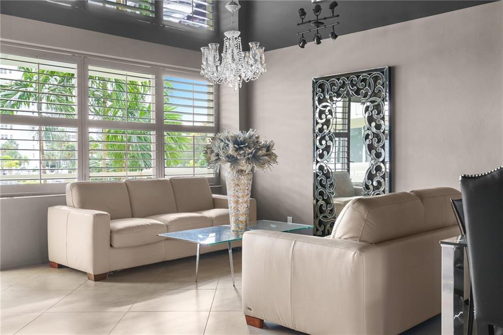 You will fall in love with this one-of-a-kind gem as soon as you open the door! This polished and sophisticated remodel offers a striking reflective ceiling that creates a dramatic cathedral effect and an incredible feeling of spaciousness. This home offers bespoke granite counters, large porcelain tile floors throughout, a cozy den area, and a chic bathroom remodel with walk in shower. Coral Ridge Towers offers all the conveniences of beachside living, with the peace of mind of 24/7 security and full service professional onsite management. This 55+ Co-Op community is located on the barrier island with the beach, grocery stores, and a variety of great restaurants within walking distance. The building offers an array of amenities including a heated pool on the intracoastal, gym, and more.