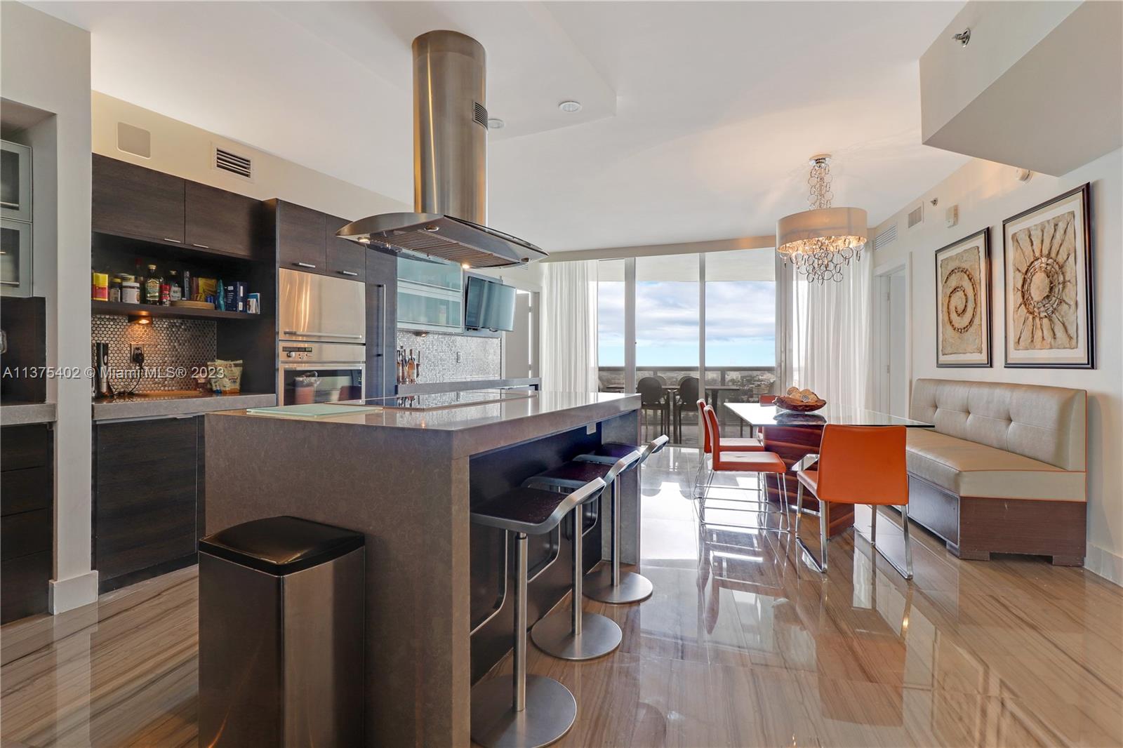 Spectacular renovated flow-through unit at the ultra-chic Murano Grande with breathtaking, unobstructed views of the ocean, Biscayne Bay and the Miami skyline. Residence 2604 consist of 4 BED/4.5 BATHS plus a bonus room that can be used as a maids/guest room. Stylishly appointed with gorgeous marble floors, custom designed built-ins with ample storage throughout, state-of-the-art-kitchen with Miele/Subzero appliances, electronic window treatments, 2 large terraces (sunrise/sunset) and a private elevator vestibule. Murano Grande is one of SOFI’s most exclusive full-service buildings with Five Star resort-like amenities such as a bayside pool, onsite restaurant, gym, spa and tennis court. Adjacent to the Miami Beach Marina, dock your boat and a day at sea is just minutes away.