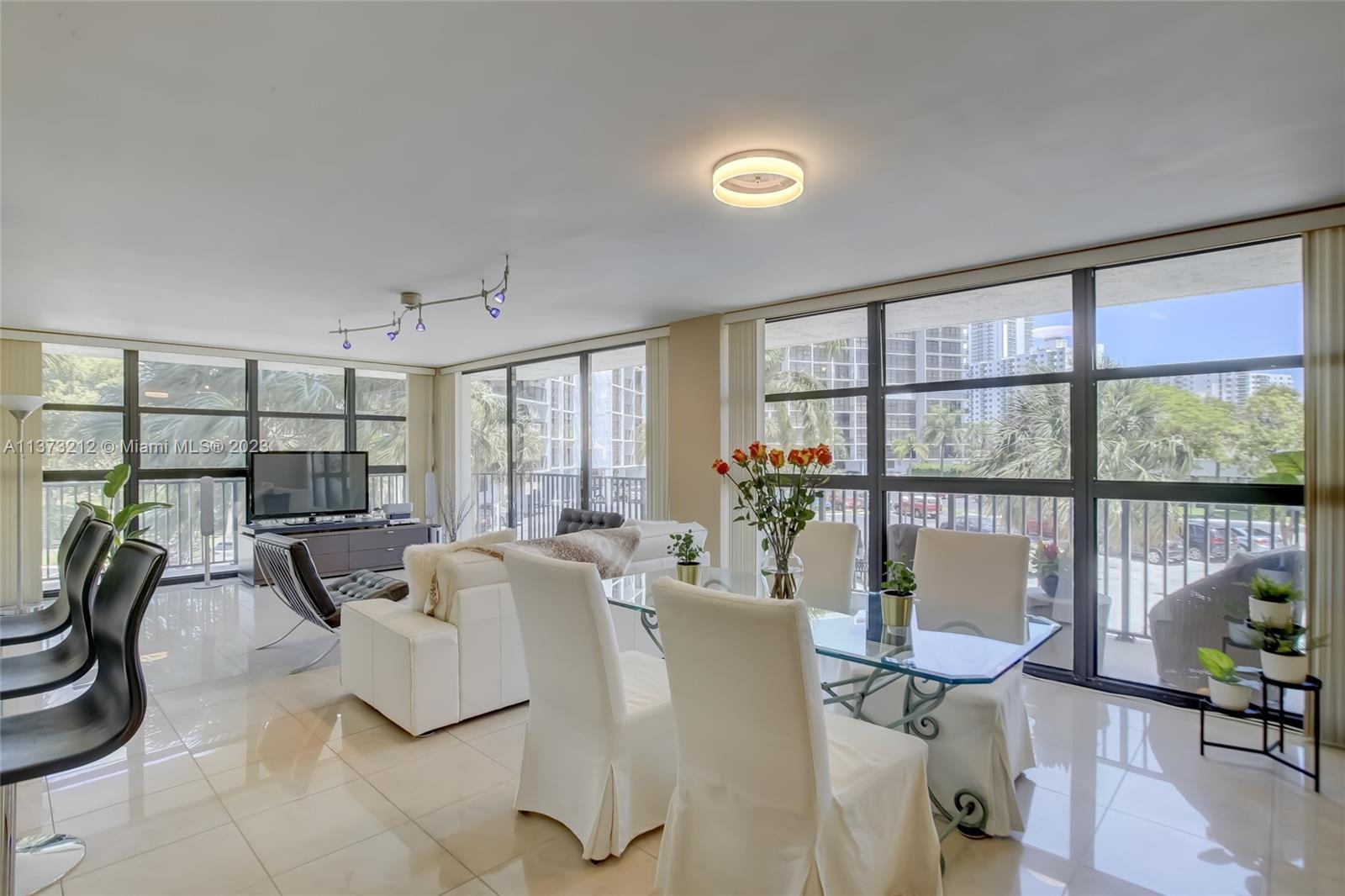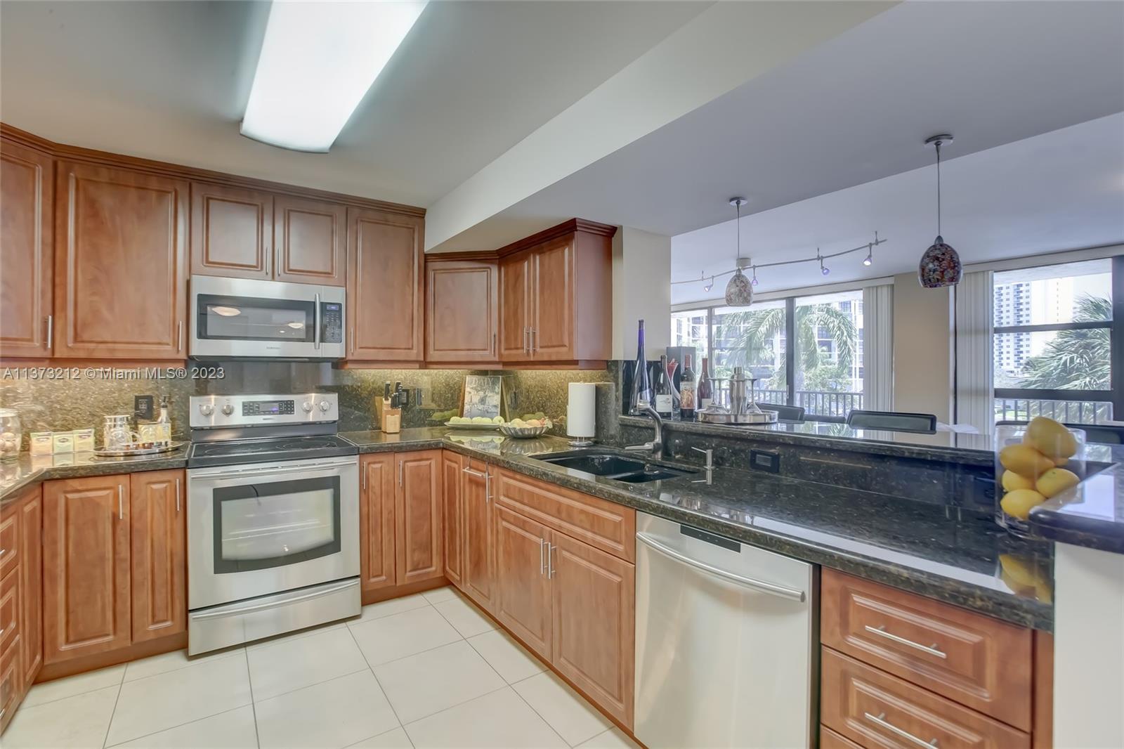 Bright NE corner unit with lots of windows & natural light. Watch the boats go up & down the intracoastal from your unit & Wraparound Balcony. Porcelain Tile in entire unit, Updated Granite Kitchen with Stainless Steel Appliances, updated Marble Vanities in Bathrooms. Washer & Dryer in Unit. Great Amenities: Tennis & pool & Clubhouse directly on Intracoastal. Sauna, BBQ, Gym, onsite manager, 24hr security. Close to Shops, dining, Racing, Casino, Airport, Aventura Mall. Short distance to the beach. Assigned Parking. Storage unit. Plenty of guest parking. Building has plenty of reserves, CONV financing available. 40 YR Certification Has Passed.