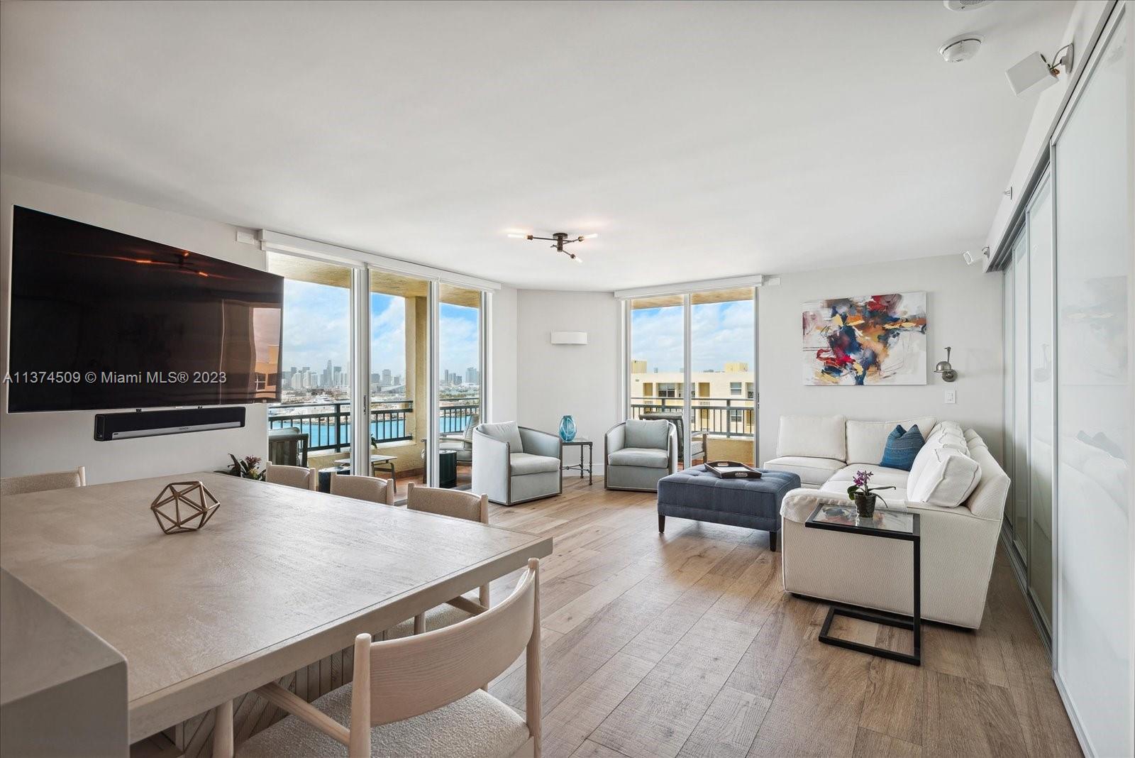 This fully renovated 2-bedroom corner unit in The Yacht Club at Portofino offers magnificent West views of downtown Miami from its wrap-around private terrace. The professionally designed space features a Control4 system to operate the surround sound, Sonos, lights, shades, and TV. The unit boasts high-end finishes, including Bosch appliances, solid cherry wood doors, and ceramic tile floors and bathroom walls from Porcelenosa. Residents can enjoy access to a range of building amenities, including a heated swimming pool and spa, lighted tennis court, fitness center, clubroom, and valet parking. The location is ideal, with world-class dining, entertainment, and brilliant beaches just minutes away. This home is perfect for those seeking luxurious living in a prime Miami Beach location.