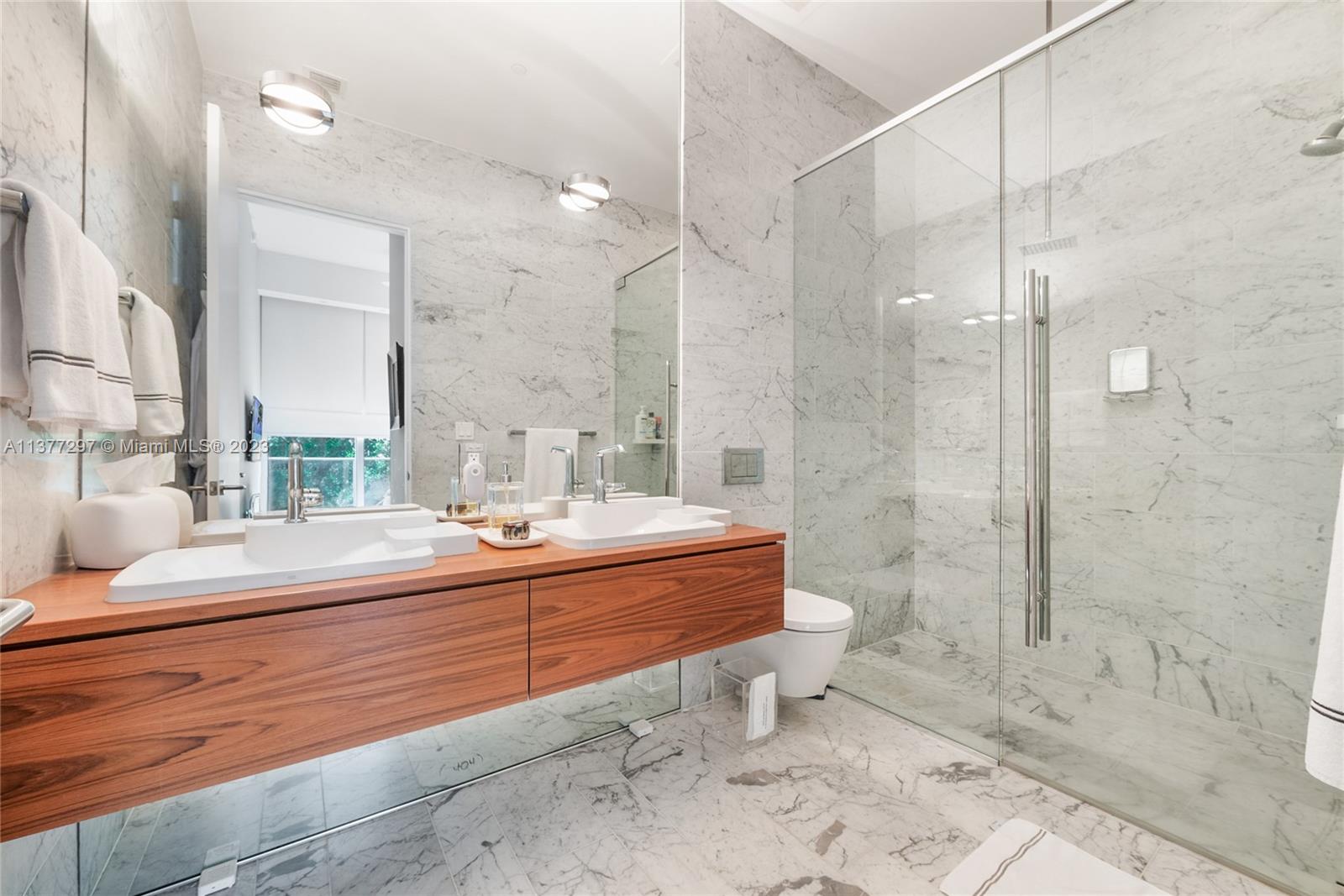 Exceptional opportunity to live in this luxurious and fully turnkey 2-bedroom, 2.5-bath apartment in Coconut Grove. Located at iconic Grove at Grand Bay, designed by famous architect Bjarke Ingels, this sophisticated & modern apartment features an open floor plan, private elevator opening to own foyer, floor to ceiling 12-feet impact resistant doors, motorized sheer and black out blinds in every room, state-of-the-art open gourmet kitchen w/ Miele appliances including wine cooler, terrace, ceramic & wood floors, laundry room plenty of storage and 2 assigned parking spaces. This exclusive building features a rooftop pool w/ marvelous water views besides other pools, state-of-the art fitness center, sauna & spa, pet service, 24-hour concierge & security, valet parking. A pleasure to show.