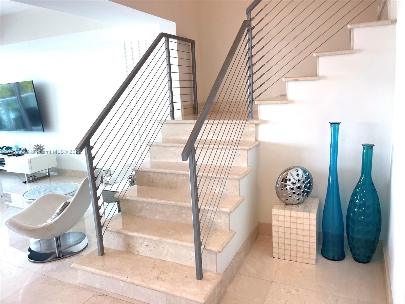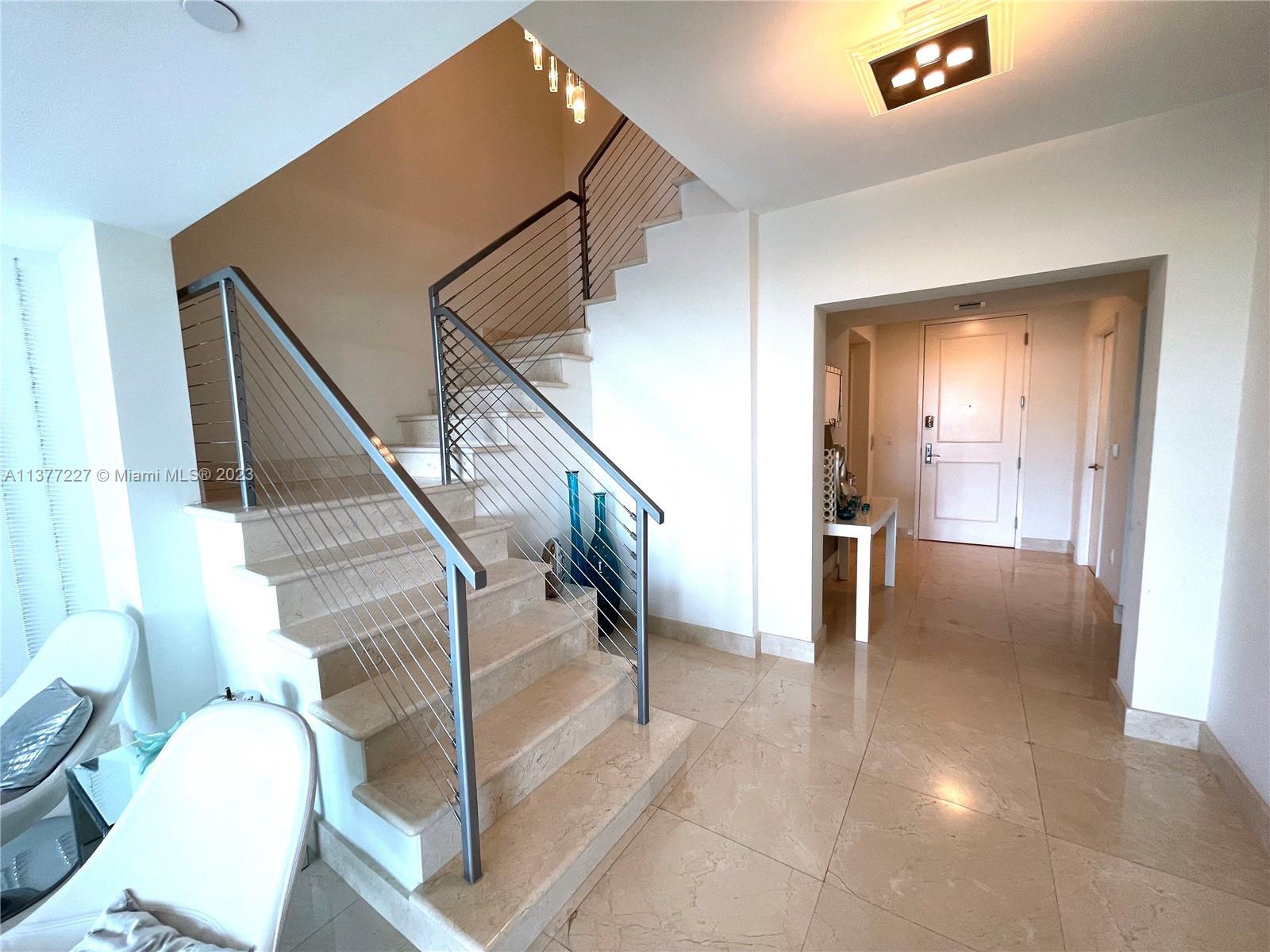 Unique opportunity to acquire duplex in exclusive Peninsula II. Magnificent unit w/ two full rooms & two closed dens converted to rooms, marble & wood floors throughout, floor to ceiling windows with intracoastal views & lots of light. First floor holds reception toilet, laundry room, & media room converted into bedroom. Living room w/ access to a large balcony. Great dining room w/ floor-to-ceiling windows & spectacular views. Kitchen with Sub-Zero refrigerator, microwave, double oven and heater & high breakfast bar. Modern staircase to upper floor with Den converted into a bedroom. Sec bedroom in suite w/ large storage closet, lots of light & views. Master bedroom, w/ large Walk in closet, master bath w/standing tub and a double-entry shower. Floor-to-ceiling windows w/ intracoastal view
