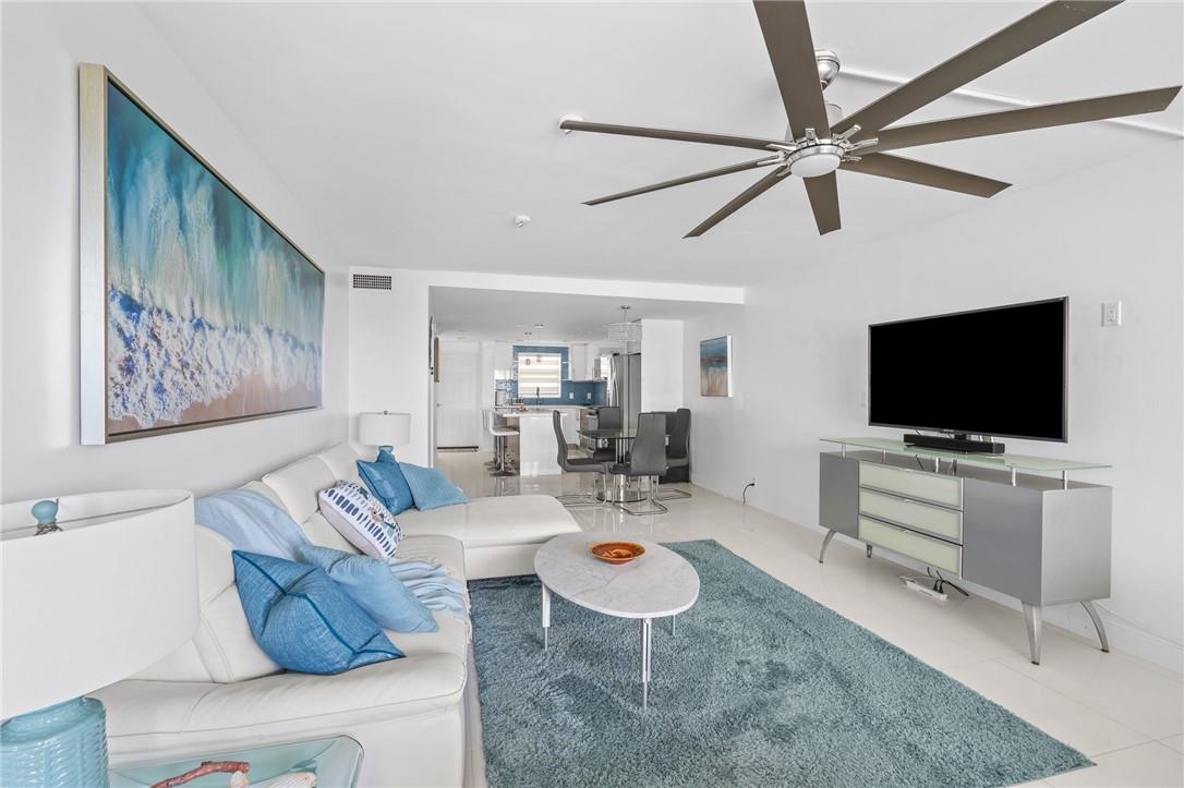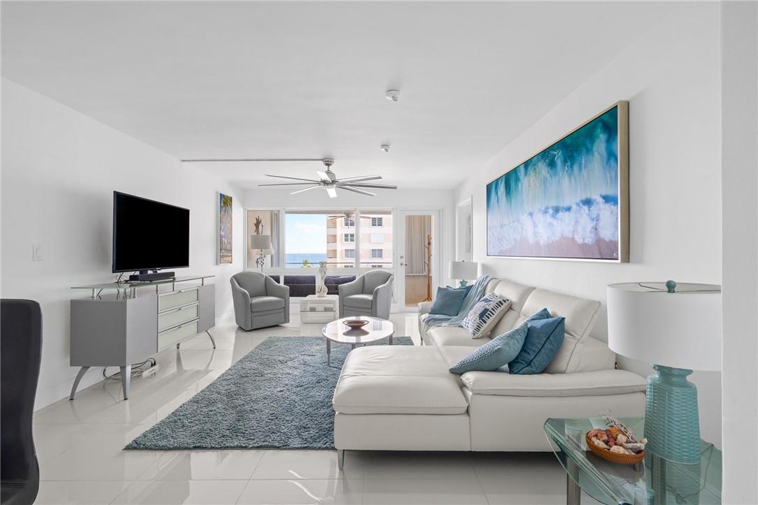 Lauderdale by the Sea is home to this oceanfront beauty, one of the best buys on our coast. Imagine waking up to enjoy the sunrise while sipping morning coffee on your spacious south facing balcony. This beautifully renovated apartment offers an open floor plan with custom lighting, modern tile floors, a center island with a sparkly quartz countertop & all the conveniences of home. Both bathrooms are modern, bright & fabulous with blue tooth speakers. All newer impact windows & doors provide energy efficiency & peace of mind. Owners will sell turn-key (negotiable) minus personal items/art work. Extra Lg. storage closet for bicycles, etc. Deeded garage parking for 1 car. This is a co-op, not a condo. Cash only purchase & only 1 rental for less than 1 year during your ownership. No Pets