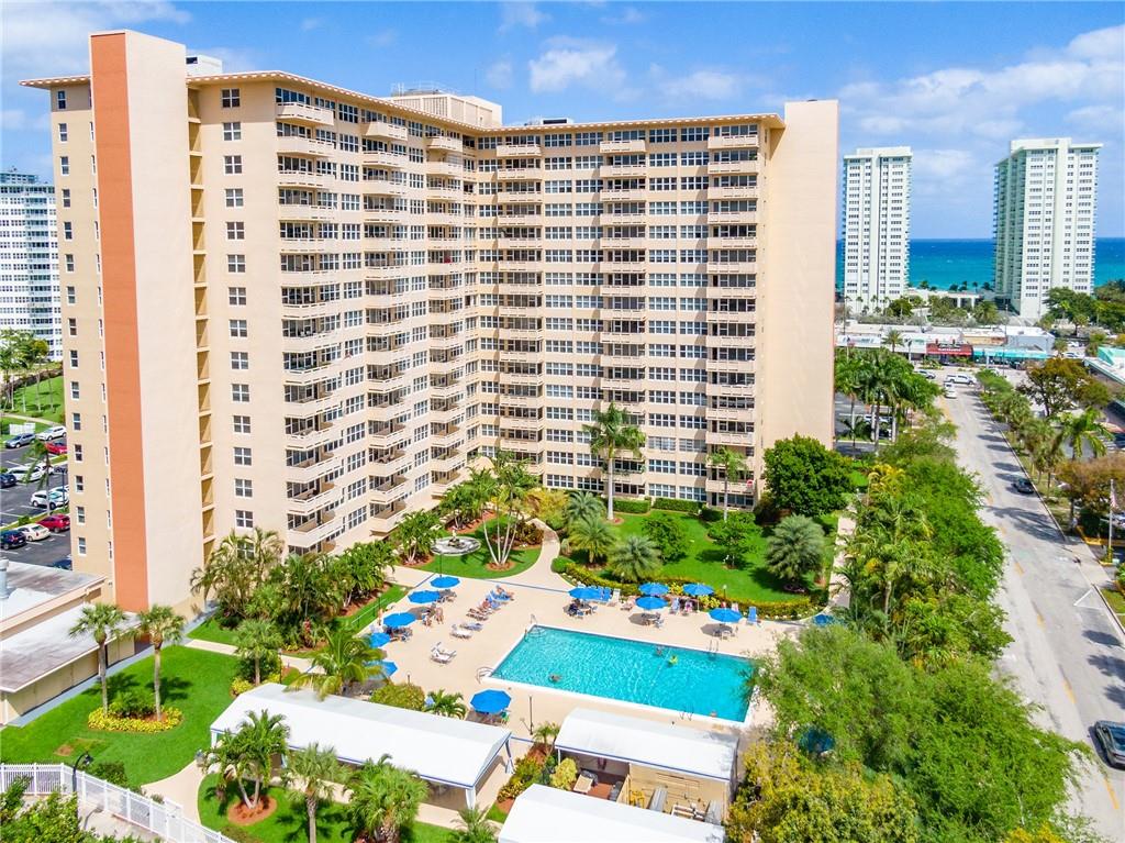 Enjoy the ocean breeze and sweeping views of the Intracoastal, ocean, and surrounding neighborhood from this hidden gem. Bring all your design ideas, this home is ready to make you own. Some photos have been virtually staged and renovated for marketing purposes. This home offers hurricane impact windows and door, and central AC for added peace of mind. Coral Ridge Towers offers all the conveniences of quaint beachside community living, with the peace of mind of 24/7 security and professional onsite management. This 55+ Co-Op community is located on the barrier island with shopping, grocery stores, and restaurants within walking distance. The building offers an array of great amenities including a heated surrounded by lush tropical landscaping, exercise room, and more.