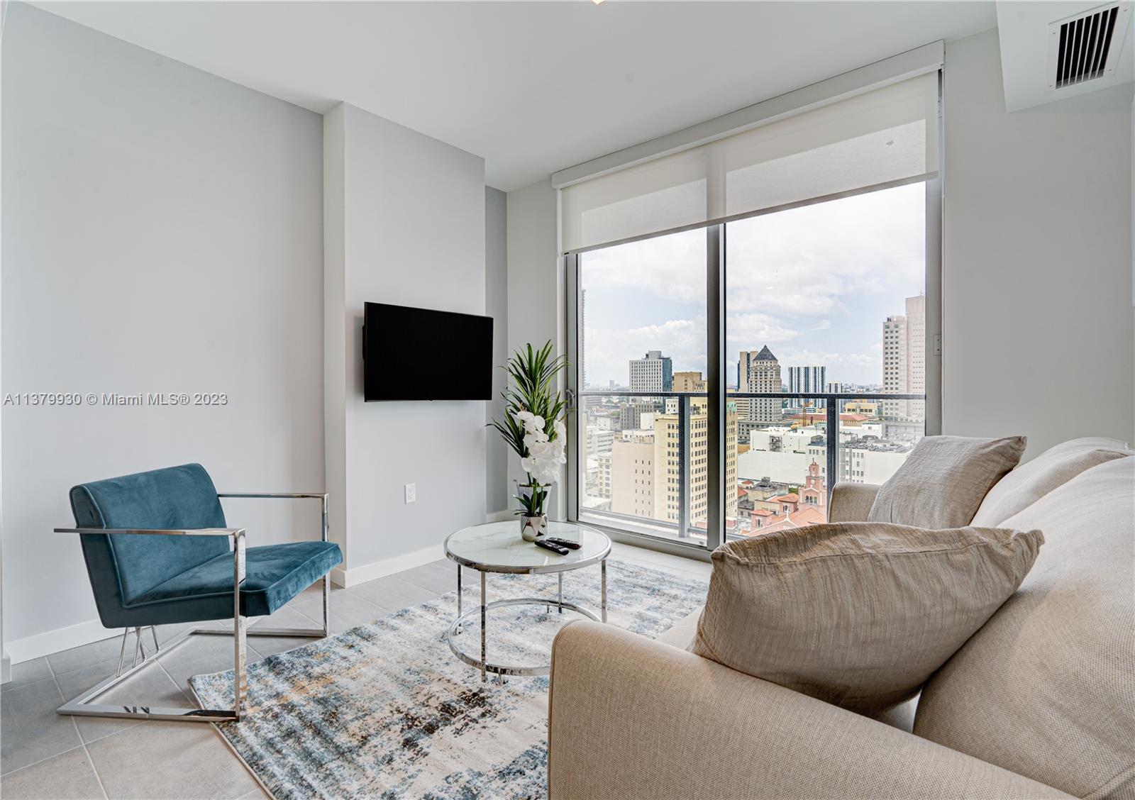 Welcome to 2205 in YotelPad Miami, where luxury meets functionality in the heart of the city. This beautiful apartment boasts an open-concept living area with floor-to-ceiling windows offering stunning views of Downtown Miami. The unit features sleek finishes, high-end appliances, and modern furniture ready to generate income! YotelPad offers residents an array of luxurious amenities, including a state-of-the-art fitness center, a pool with stunning city views, and a 24-hour concierge (& more!). With its prime location in downtown Miami, this unit is perfect for those who crave the energy and excitement of city living. Short-term rental is allowed in this building, perfect for investors and second-home buyers.