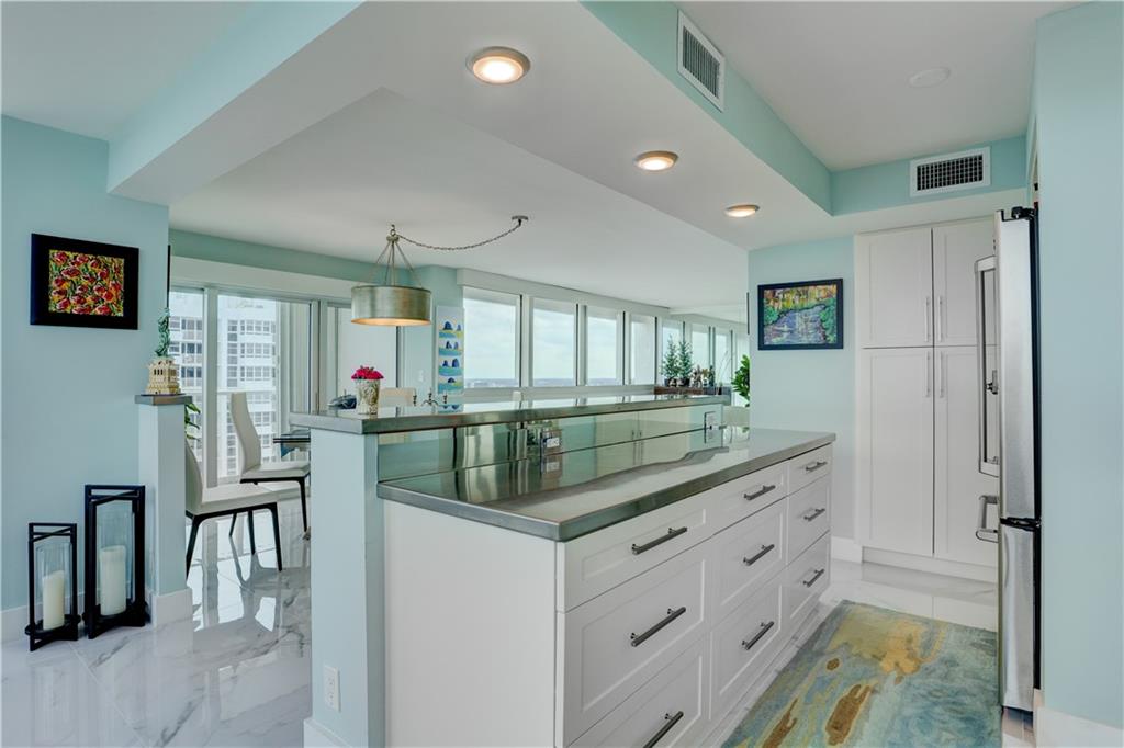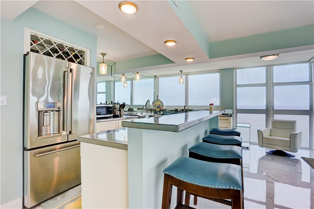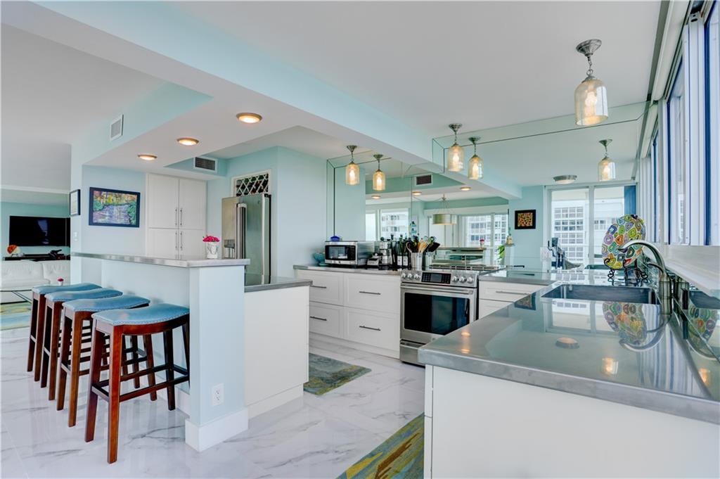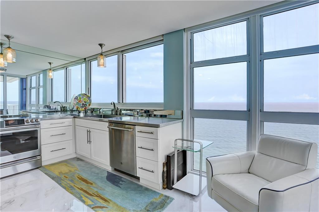 Highly sought after and rarely available Southeast corner unit on a high floor with spectacular direct ocean views all the way to Miami. Beautiful renovations with attention to detail include 48" tile floors throughout, electric blinds, all new interior doors and trim, lighting fixtures, seamless glass shower doors, Toto commodes, popcorn ceilings removed. Open kitchen with stainless steel countertops and appliances. Split bedrooms. Impact windows and doors. Washer/dryer in the unit. Designated parking spot in the garage right next to the door. Amenities include 24 hour security, tennis/pickleball court, pool, sauna, hot tub, fitness center, ballroom and sky lounge. Seller will pay pool assessment in full.