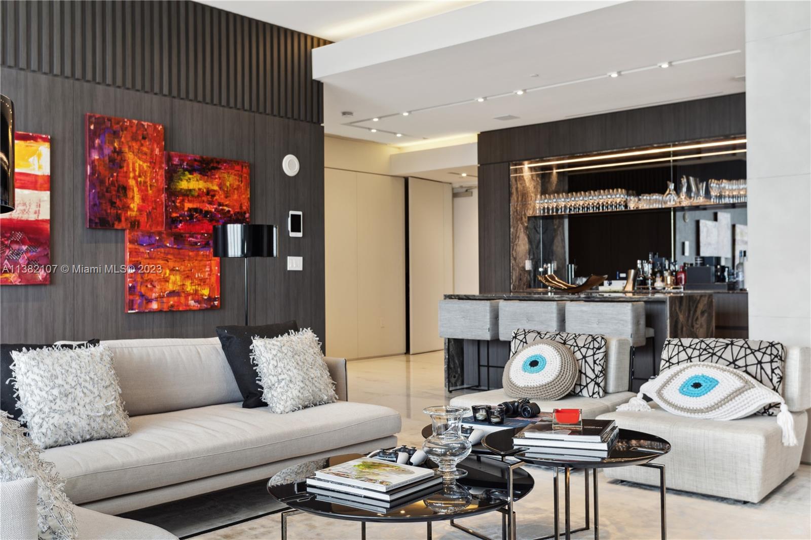 Muse Residences is an ultra-exclusive boutique building with exceptional private amenities. This unique, combined double-unit offers 6 bedrooms, 7.5 bathrooms, and a spacious, open floor plan. Smart-home fully automated with Floor-to-ceiling windows and 14-foot ceilings invite natural light to illuminate the entire home, while showcasing incredible panoramic direct ocean and skyline views. The residence was redesigned by the renowned Troy Dean Interiors. Additional special features include right to park up to 6 vehicles, wine storage, and 2 private elevators.