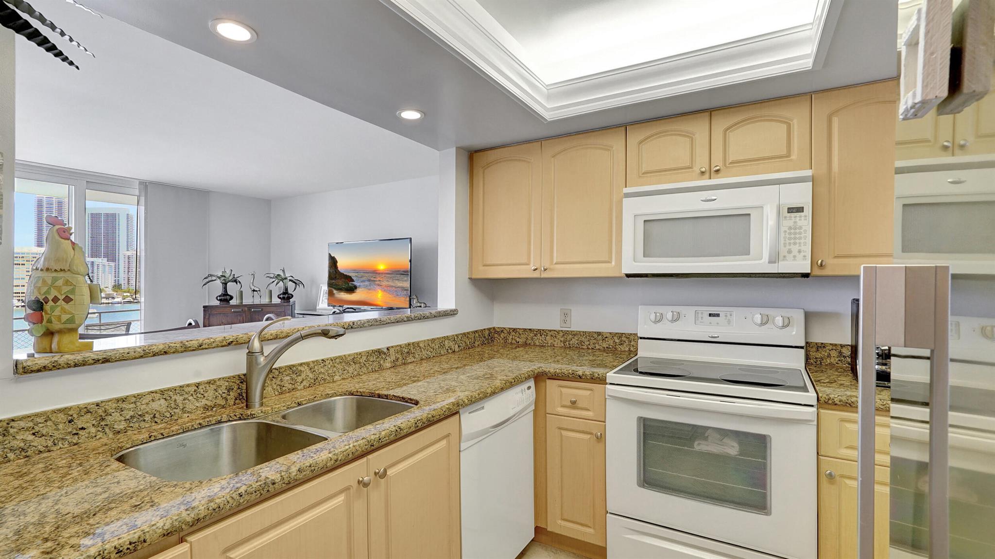 Welcome to your new dream home! This stunning 2 bedroom 2 bathroom condo is located in the heart of Hallandale Beach and boasts breathtaking views of the water.As you enter the unit, you will be greeted by an open and spacious living area that flows seamlessly into the dining area and kitchen. The sleek kitchen features newer appliances, granite countertops, and ample cabinet space.The master suite, features a spacious bedroom with stunning water views and an en-suite bathroom with a single vanity, and glass-enclosed shower. The second bedroom is equally spacious and features its own bathroom, making it perfect for guests or a home office.Relax and take in the stunning views from your private balcony, accessible from the living area.