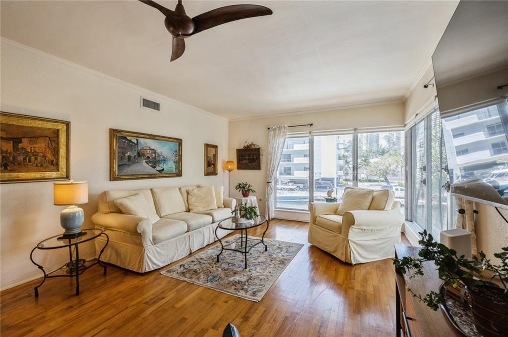 A charming 2 bedroom, 2 full bath CORNER UNIT, in bldg.3661 of Eastern Shores Community Apts. This garden style corner unit in boutique type building, faces NE, with a private East facing entrance featuring floor to ceiling wrap around windows, hardwood flooring and custom-made solar shades. It overlooks a saltwater canal and offers a generous space, open and bright with a good flow of light and air. Recent kitchen renovation features new appliances. Ample closet and storage with an additional storage room. Common area includes seawall with potential for boat space, when available. ES is a highly desirable neighborhood, with current and upcoming multimillion dollar projects. Easy walk to Mall, beach, and worship. ESCA INC. is a CO OP with NO land lease and low maintenance fees.