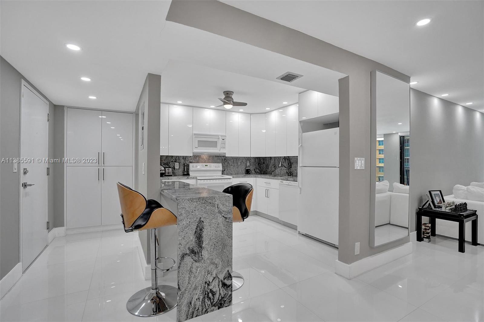 Showings begin Friday, June 30 12-2pm. Love this updated zen-modern 2 bed/2 bath oceanfront condo w/breathtaking ocean & city views. New renovations incl impact windows/doors, glass balcony railing, large 32"x32” tile floors & recessed LED Lutron lighting. Enjoy cooking/entertaining in the open kitchen with granite countertops/backsplash & KitchenAid appliances. Bathrooms feature tall, dual vanities & glass tops. Closets include built-in shelving. New-modern lobby entrance by award-winning Steven G Interiors. World Class amenities: 2 heated pools, fitness center, sauna, billiard rm, business ctr, yoga/water aerobics classes, umbrella/beach chair service, on-site restaurant, golf, valet, 24HR security. Close to FLL, Gulfstream, & Hollywood Broadwalk. Current lease ends Aug 25, 2023.