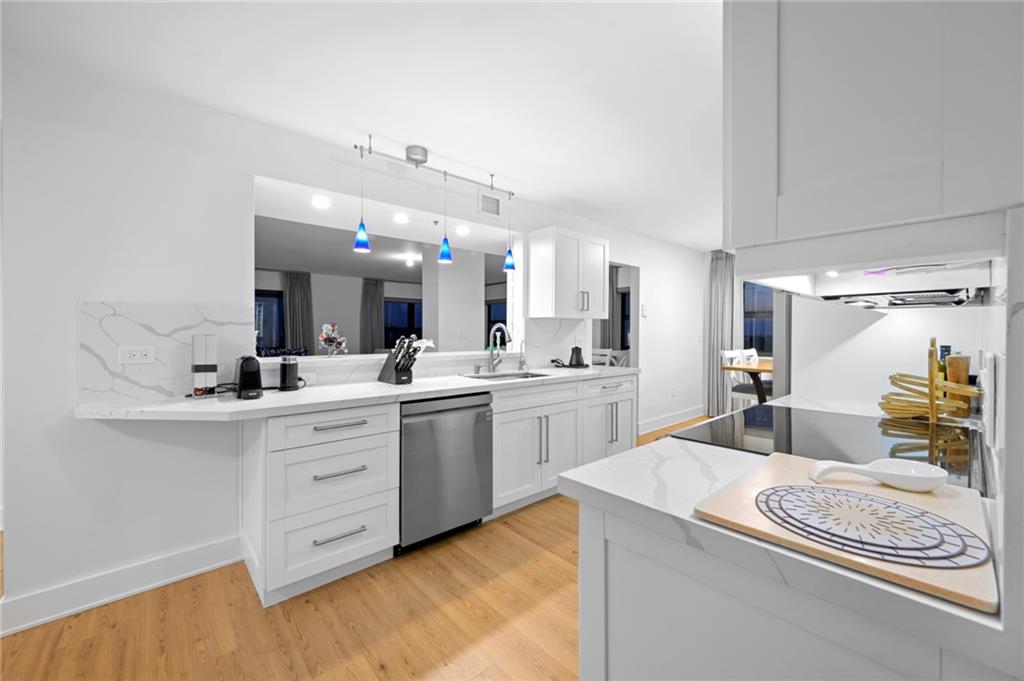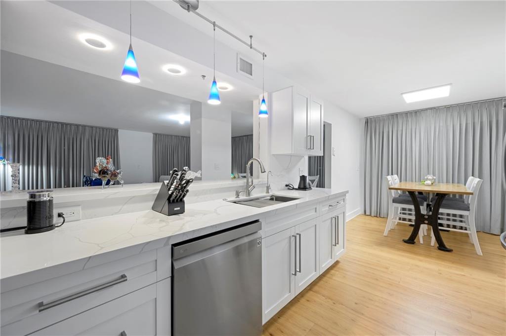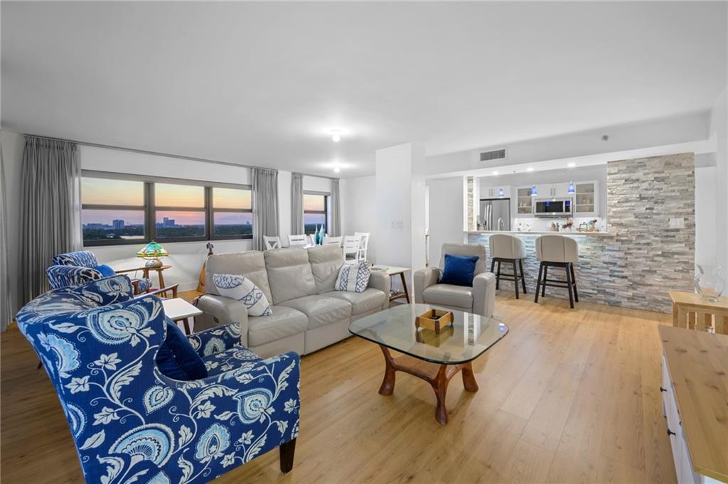 Welcome to Paradise. Unique opportunity to own a Oceanfront residence. Corner unit in a great location. Breathtaking Panoramic view. Watch the sunrise over the ocean & the sunset over the intercoastal. This renovated Beach Home has many upgrades. Premium padded vinyl floor & whisper mat sub floor, custom made hardwood oak doors with glass insert, top of the line sound & thermal insulated Hurricane impact windows & doors, custom designed solar shades & curtains from Baers featuring Somfy wireless operation by remote or phone app. Kitchen & laundry room feature all plywood white cabinets with soft close dove tail drawers. Motion activated Koehler faucet. Quartz countertop & back splash. Top-notch LG Stainless Steel appliances & matching Samsung induction range. Bathrooms & closets upgraded.