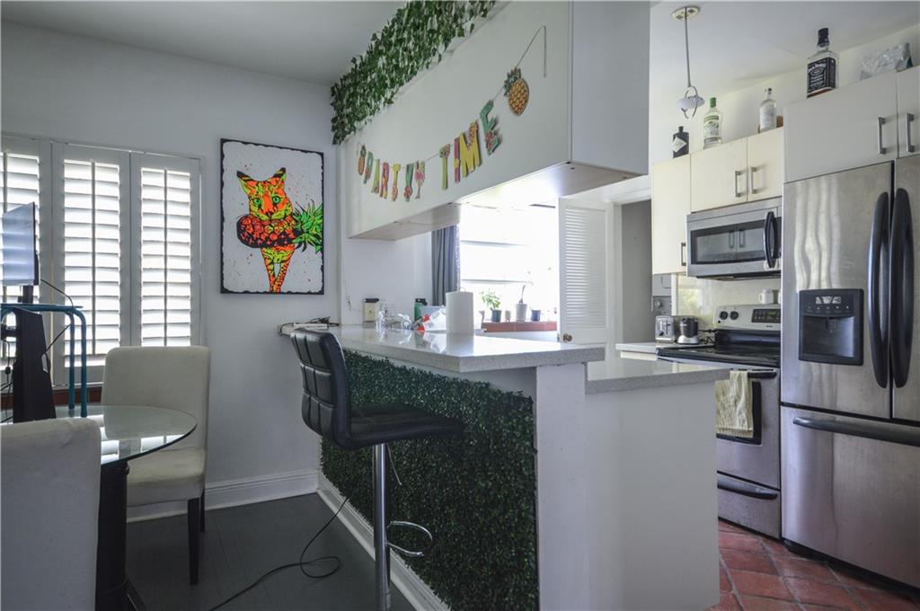 Quintessential Miami Beach living! If LOCATION, LOCATION, LOCATION is what you're after, then look no further. Just one block from the Lincoln Rd. Shopping & Entertainment District, 0.5 miles from the Filmore Theater, 4 blocks to Collins Ave, Ocean Drive & Lummus Park, 3 blocks to Flamingo Park. Who needs a car when you can walk to everything. Built in 1934, this Art Deco condo is located in the heart of the Miami Beach Art Deco Historic District. There are 2 bedrooms, 2 updated bathrooms, open kitchen with breakfast counter and dining area, living room with vaulted ceilings and exposed beams. With windows on three sides of the condo, abundant natural light makes the space bright and airy.