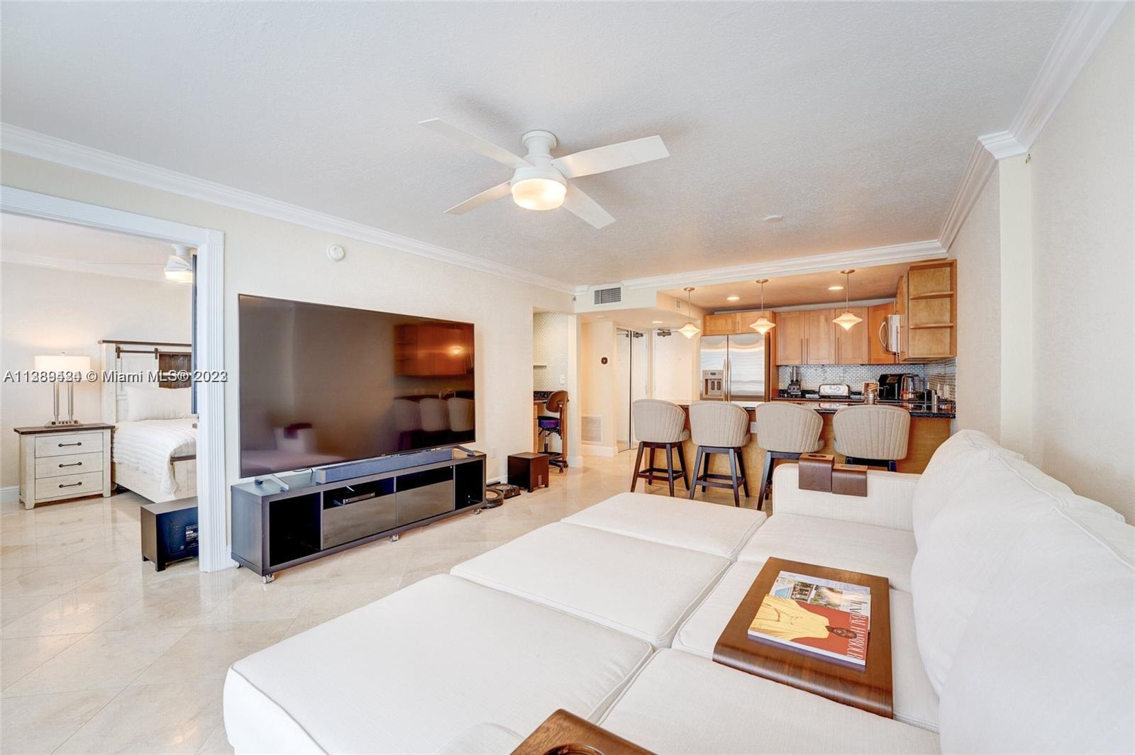 South Beach Oceanfront Living. This home has Southern exposure with breathtaking sunsets and direct ocean views. Completely renovated with an open concept kitchen including stainless-steel appliances, refrigerator, microwave, convection oven, dishwasher, and washer/dryer in unit. State-of-the-art smart home using Alexis and Siri on a smartphone for remote access for front door video access and lock, all lighting, and thermostat control. Also features a five-foot wide custom pocket door for direct ocean views from the bedroom, marble floors, custom closet, wood shutters, prewired living room speakers, and all Kohler plumbing fixtures. Beautiful Pool and Sauna. HOA fee includes Cable, High-Speed Internet, water, and trash.